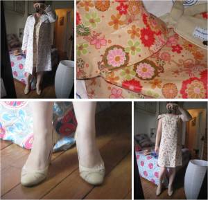 Pour commencer, ma petite robe très première communiante signée de ma chouchoute Tara Jarmon. L’imprimé de cette petite robe sage est japonisant, je suis couverte de branches de cerisiers en fleur.