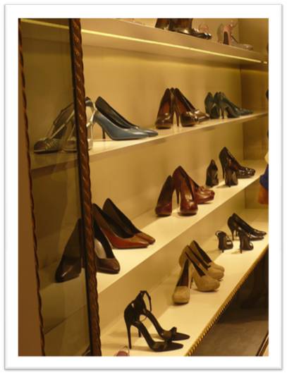 On reconnaîtra les sandales high high high-heeled Tribute de Saint Laurent ; des escarpins Miu Miu ; de jolies bottes Nina Ricci. Miam miam!!