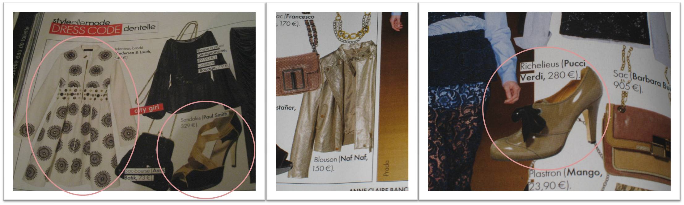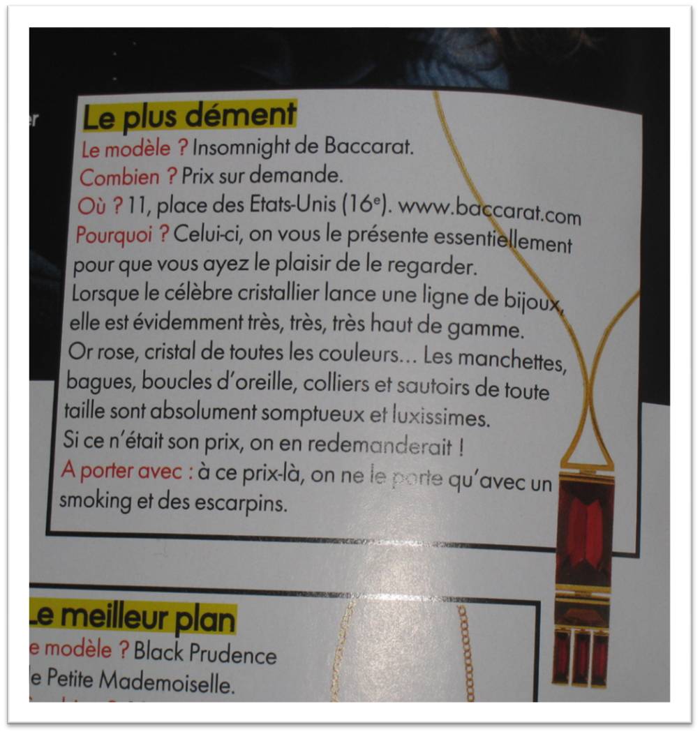 En parlant de bijoux il y en a plein les pages. Enfin, des trucs qui brillent. Ca me plaît bien, surtout le sac Prada…