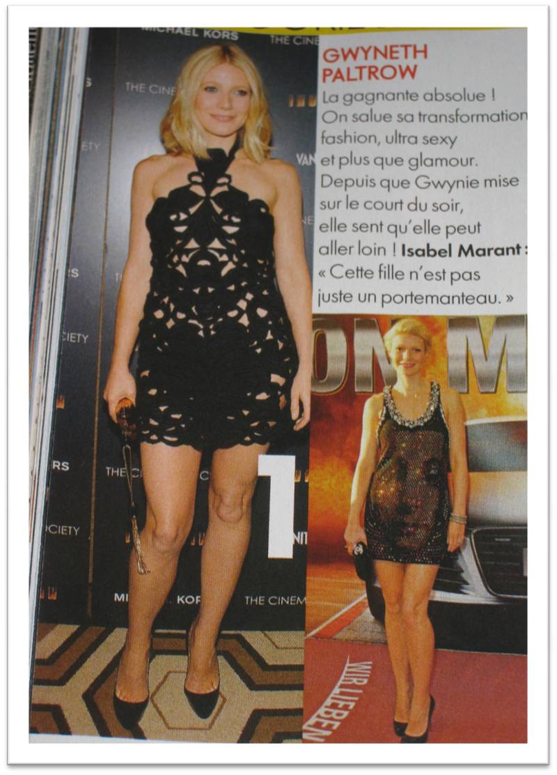 La belle Gwyneth pour commencer. En couverture. En tête du classement des dames joliment vêtues sur tapis rouge (euh, pas toujours, hein Bali?). Et qui parle de sa nouvelle coupe de cheveux, de son retour devant la caméra et sur les red carpets et de sa dépression post-bébé. Mouais. J’aime beaucoup sa nouvelle coupe de cheveux, pour le reste…