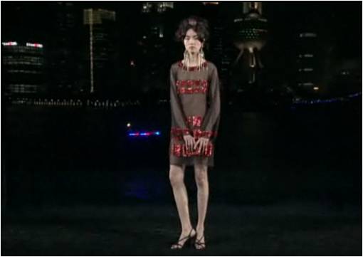 Laques, bois précieux, paravents peints, vases parés d’arabesques, uniformes d’officiers, rouge de Chine, voilà ce que l’on retrouve dans les silhouettes qui défilent.