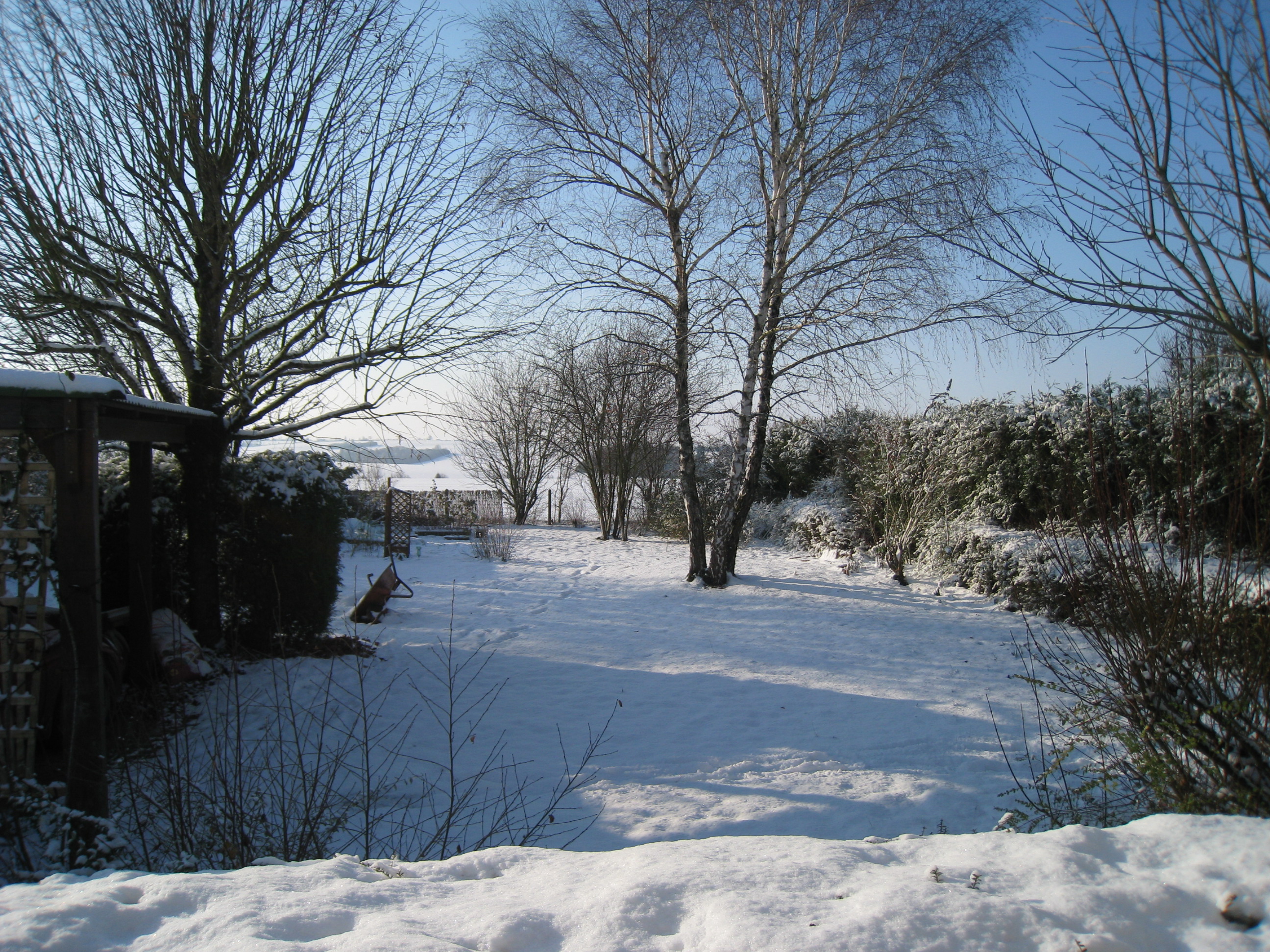 Le jardin est recouvert d’un joli manteau blanc et ouaté. Il semble calme, infiniment calme sous son épaisse blancheur.