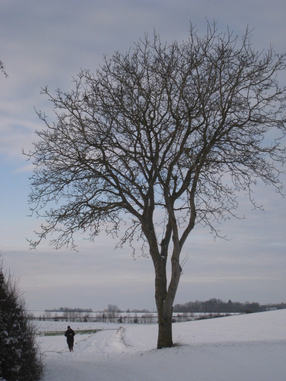 Quelle joie que d’aller marcher dans la neige, profiter de la magnifique lumière et s’emplir les poumons de cet air frais et piquant. Bien emmitouflée de la tête aux pieds, toute la famille est partie se balader sur le petit chemin qui part derrière la maison.