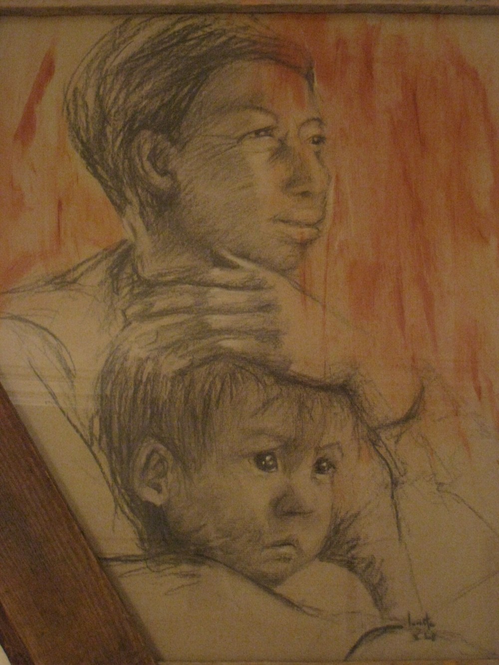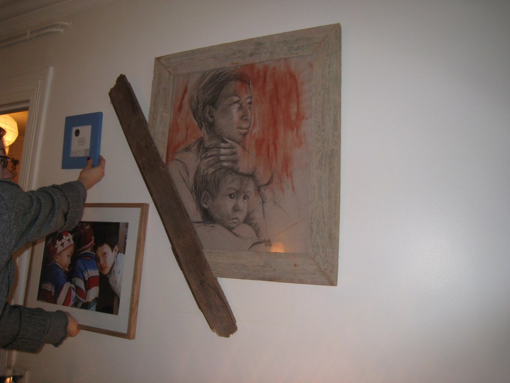 Pas si blanche depuis que l’une des adorables cousines de Mr Papillon nous a offert l’une de ses œuvres: un magnifique fusain & sanguine d’une vieille dame cambodgienne et son petit fils.
