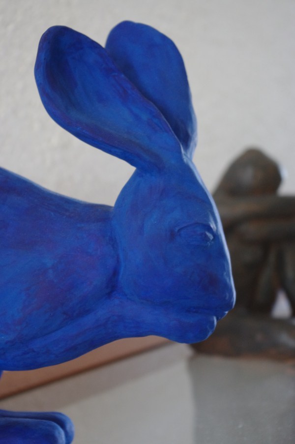 Son attitude, son museau et ses grandes oreilles, son bleu Klein… tout en ce petit lapin (pas si petit) me plaît.