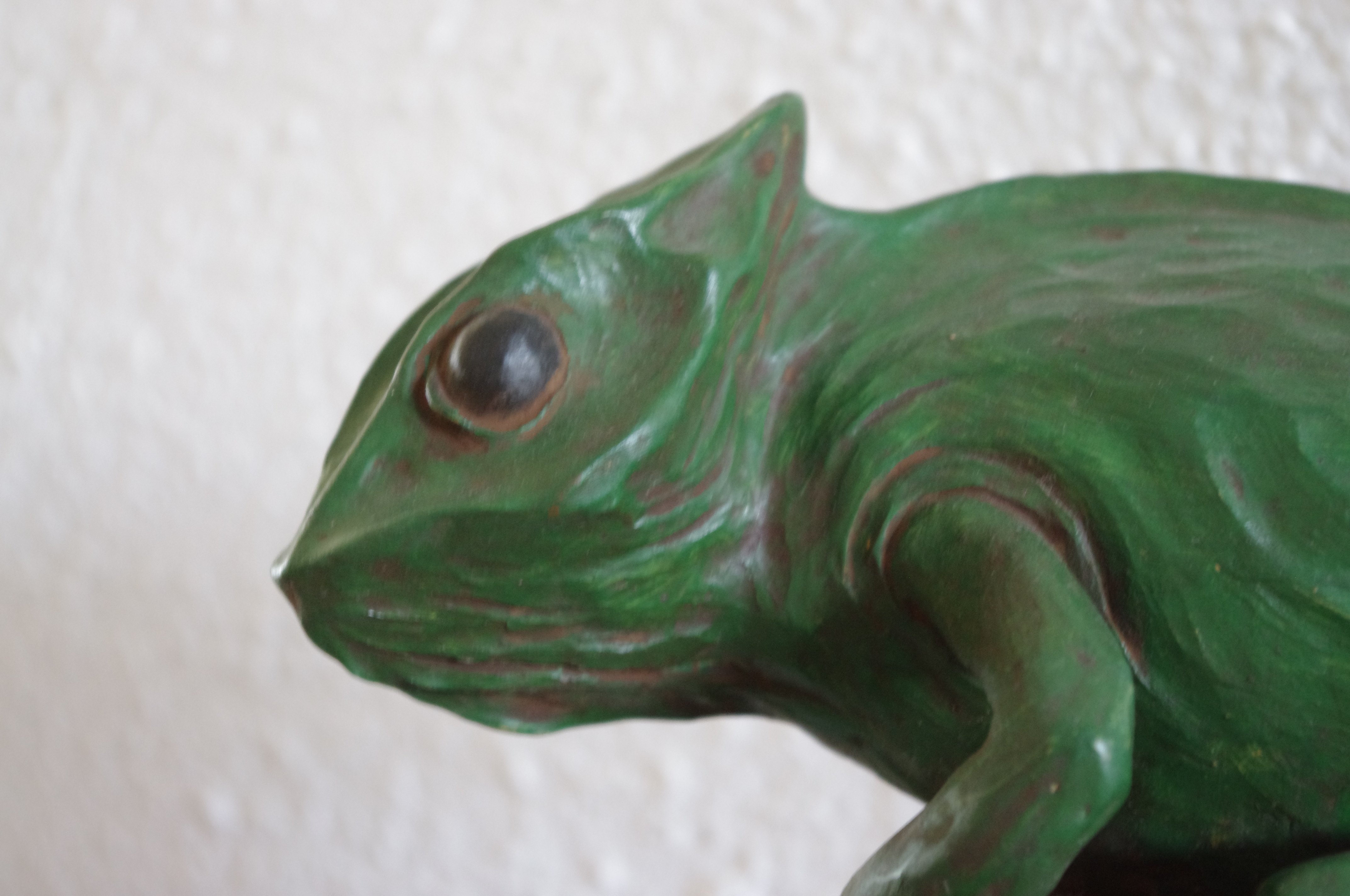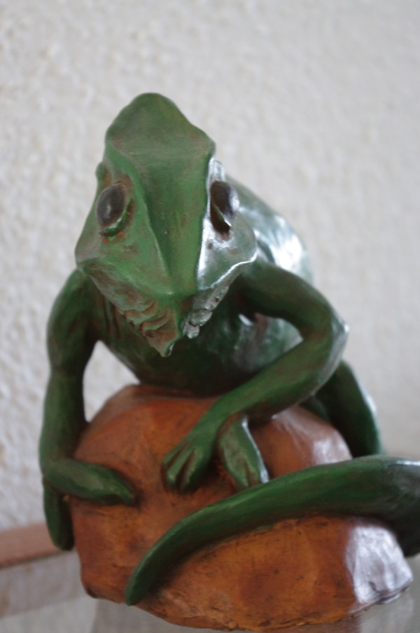 Dans le bestiaire il y a aussi Mr le Caméléon qui effraie les concierges tant il a l’air vrai. Il a pourtant une mine bien inoffensive et l’air paisible!