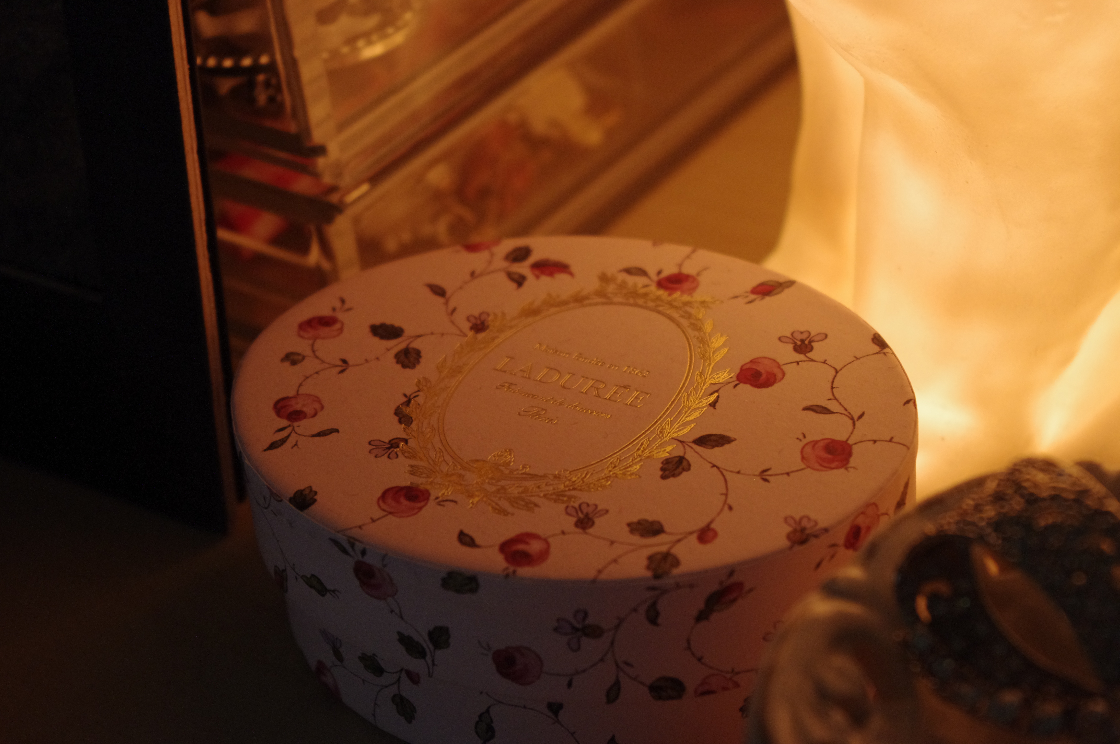 Je ne sais pas ce qui m’a pris mais sitôt sorti de son sac rempli de victuailles, il a atterri dans cette boîte (Ladurée toujours… je suis mono-maniaque, cherchez pas)  dessinée par Yazbukey.