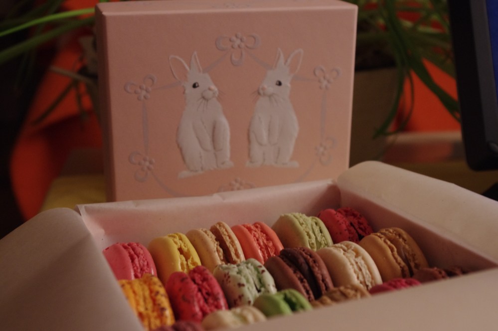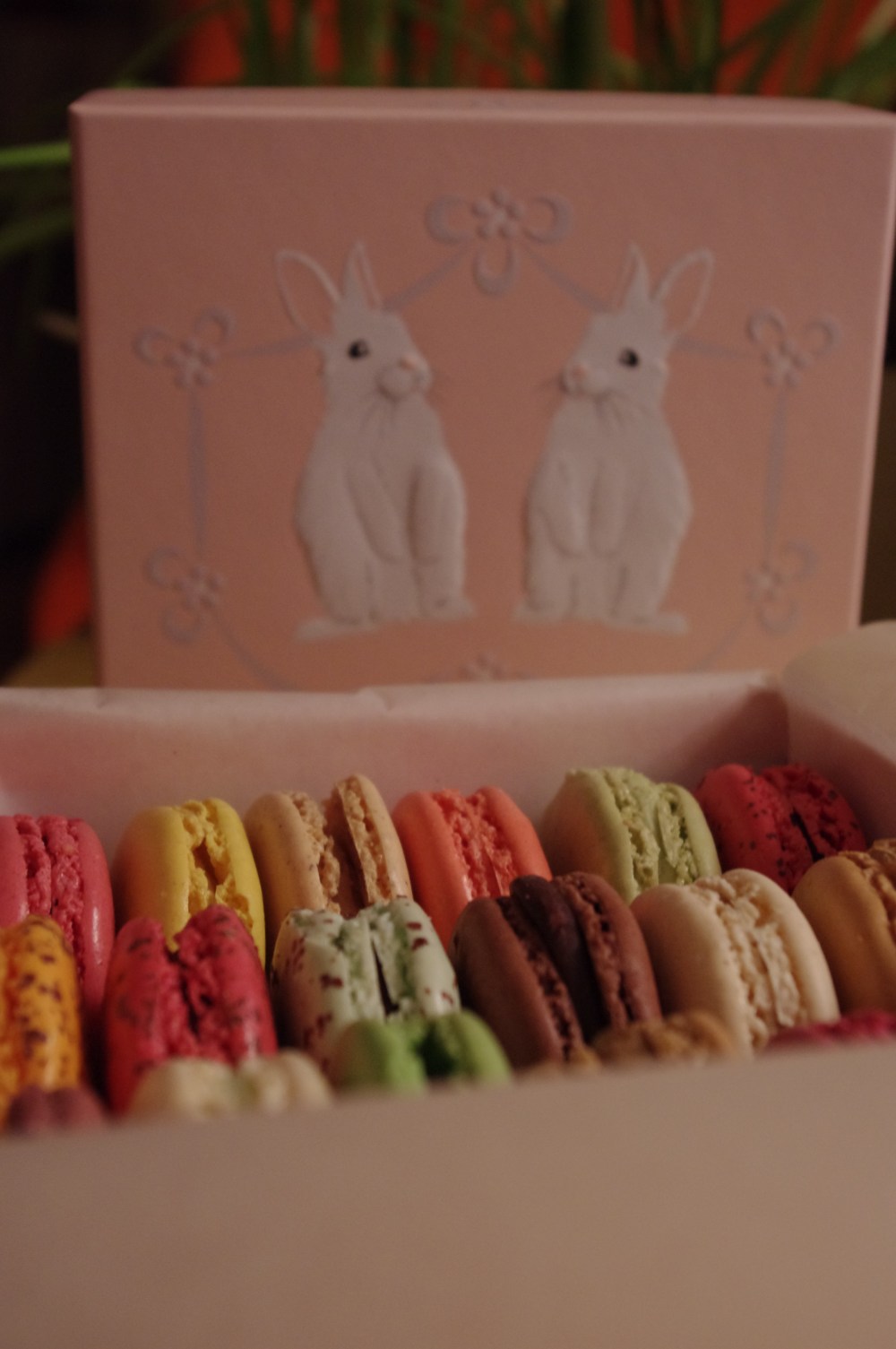 Bon, je suis passée à côté de la ravissante boîte remplie de petits lapins multicolores, mais je me suis rattrapée sur les macarons et…