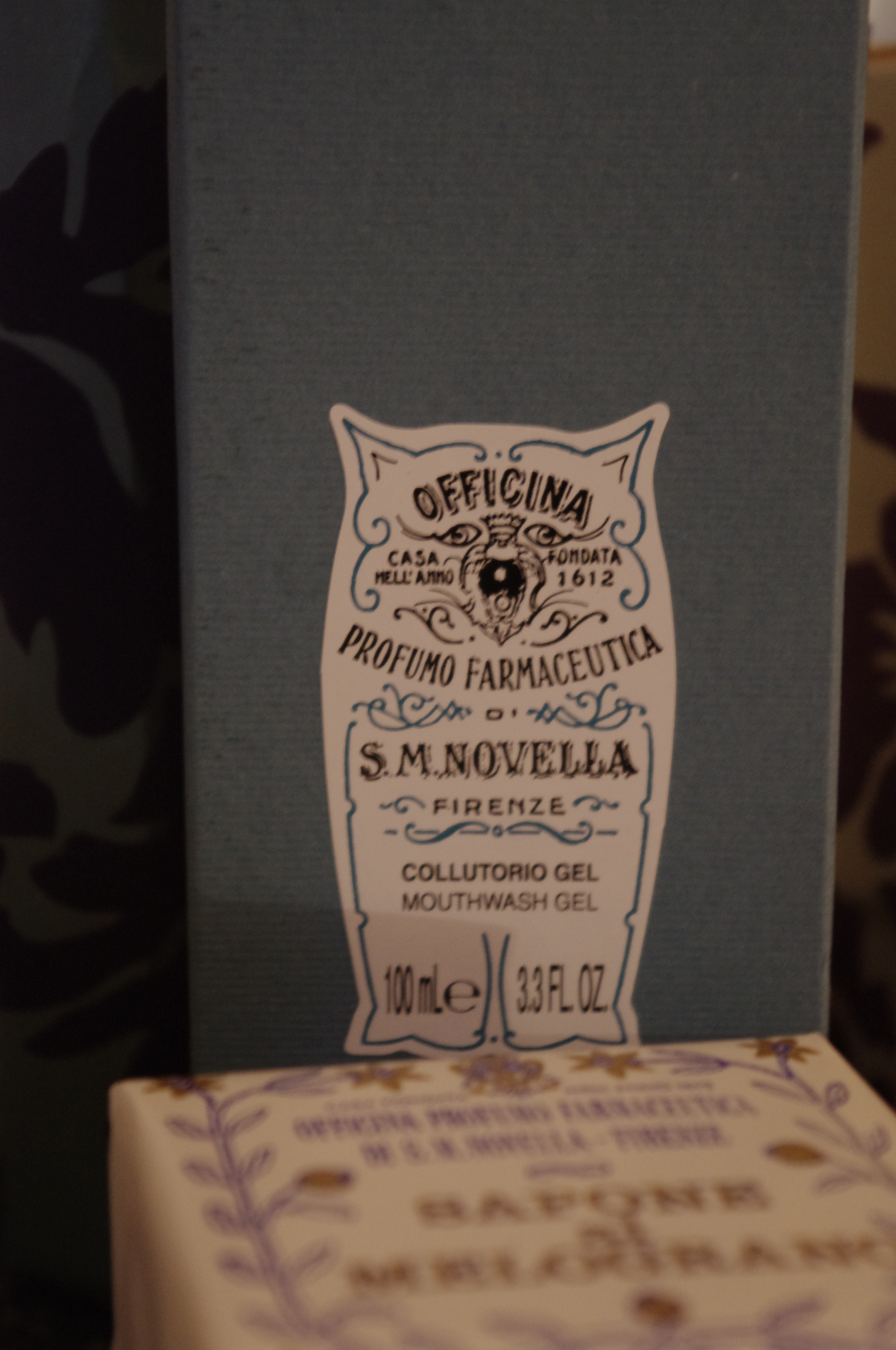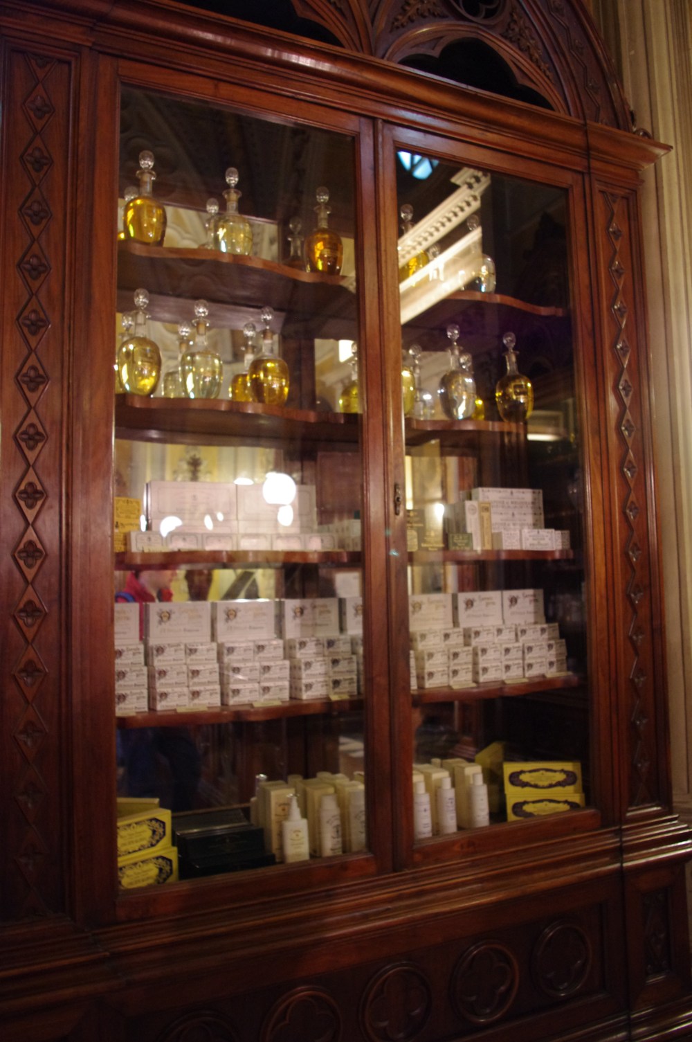 Une eau de Cologne, la classique Santa Maria Novella, qui sent la vraie eau de Cologne à l’ancienne. Pas très original quand on pense au nombre de parfums proposés. Mais au bout de 5 essais mon nez refuse de distinguer correctement tout ce qu’on lui soumet, et il n’y a que cette odeur très fraîche qui m’a plue.