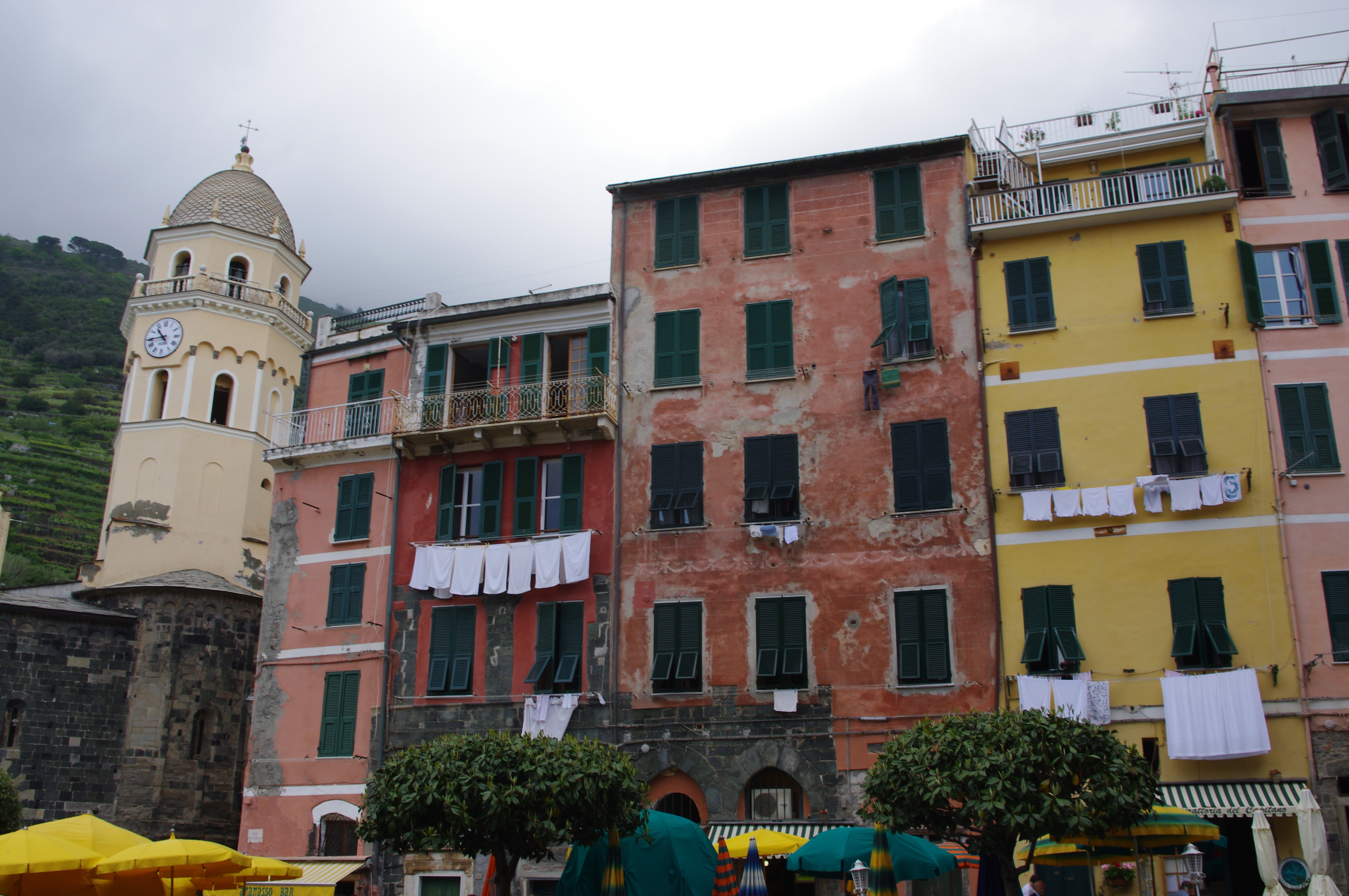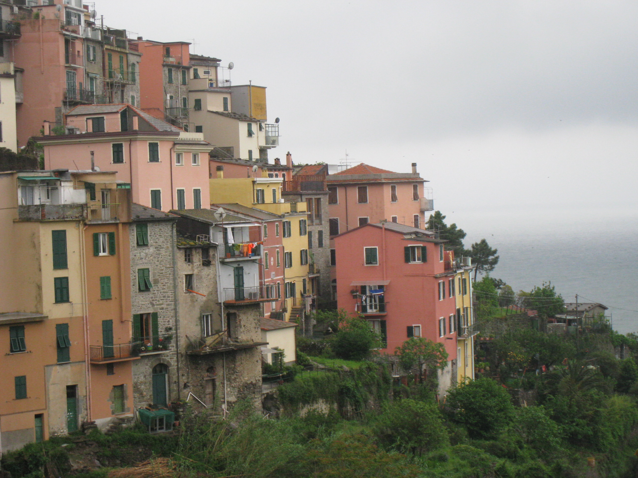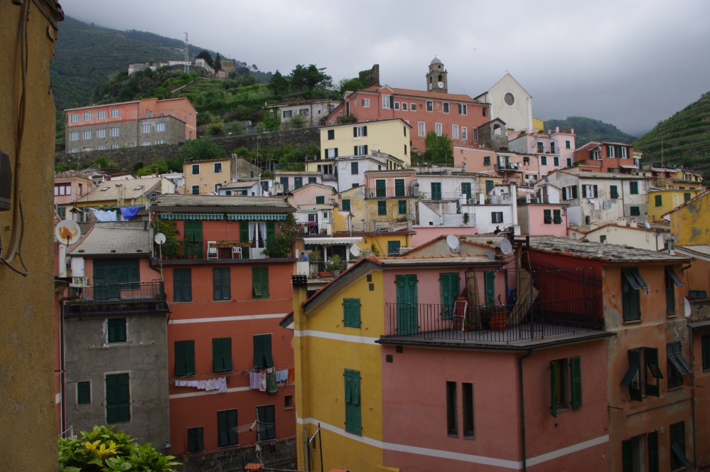 Il a plu beaucoup, tous les jours, nos photos manquent donc cruellement de lumière, mais je vous emmène malgré tout visiter un peu Monterosso, Vernazza, Riomagiorre, Manarola et pour commencer Corniglia où nous étions installés.