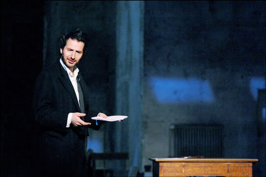 Je vous parle du texte et presque uniquement du texte car c’est lui qu’Edouard Baer sert. C’est bien le dandy adoré des foules et des bobos (beaucoup trop nombreux dans la salle… un public insupportable… je ferme la parenthèse) qui est là, mais il est discret et humble le dandy.