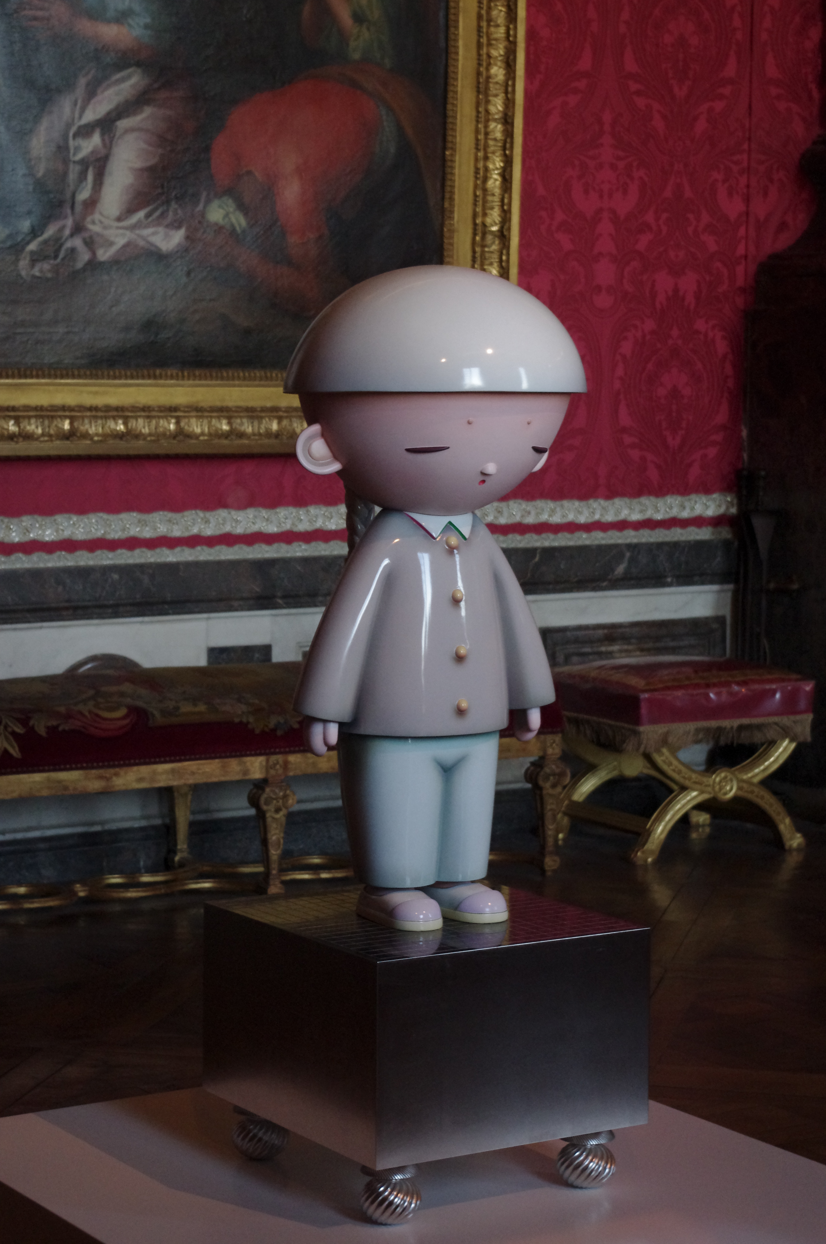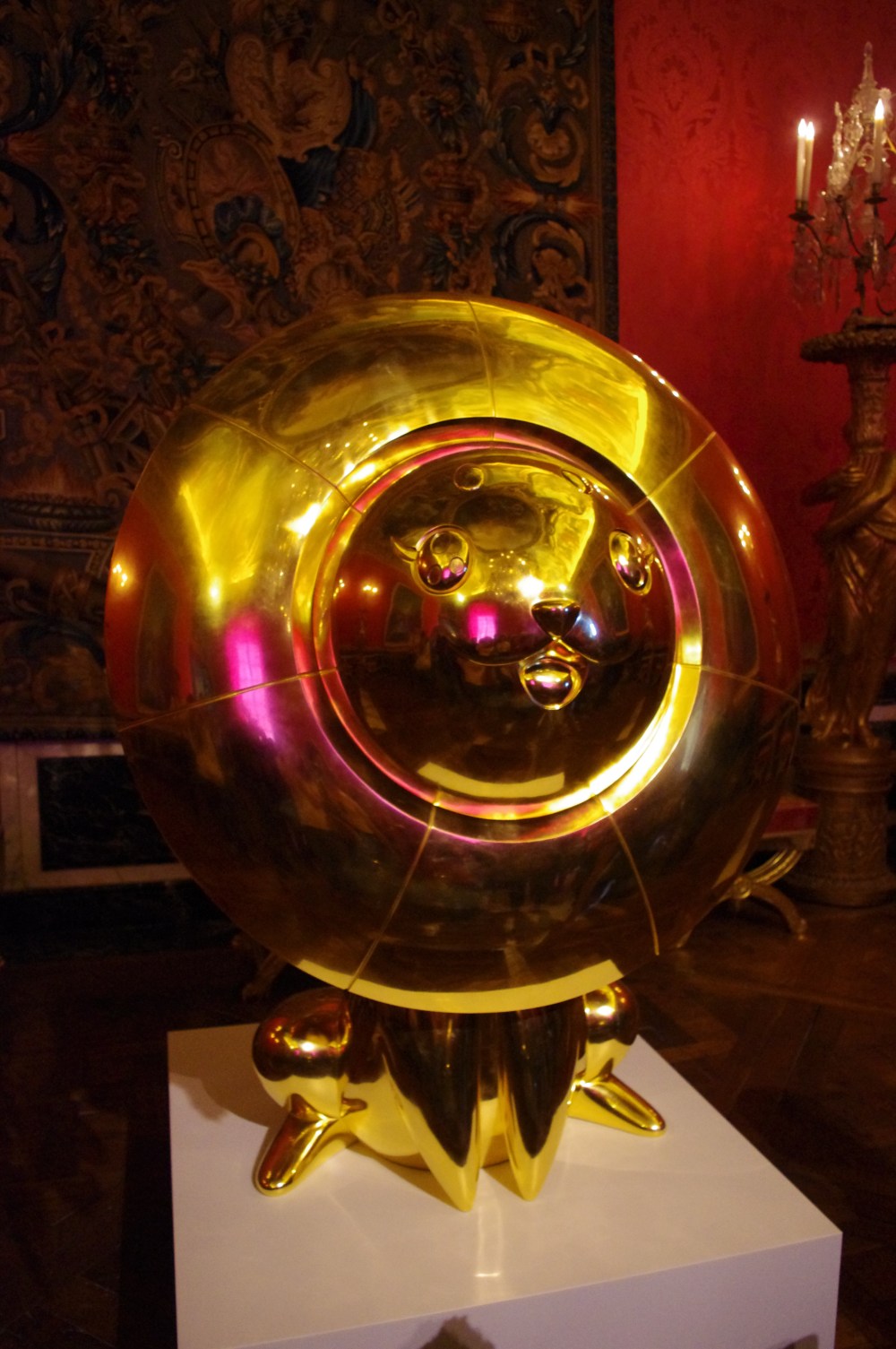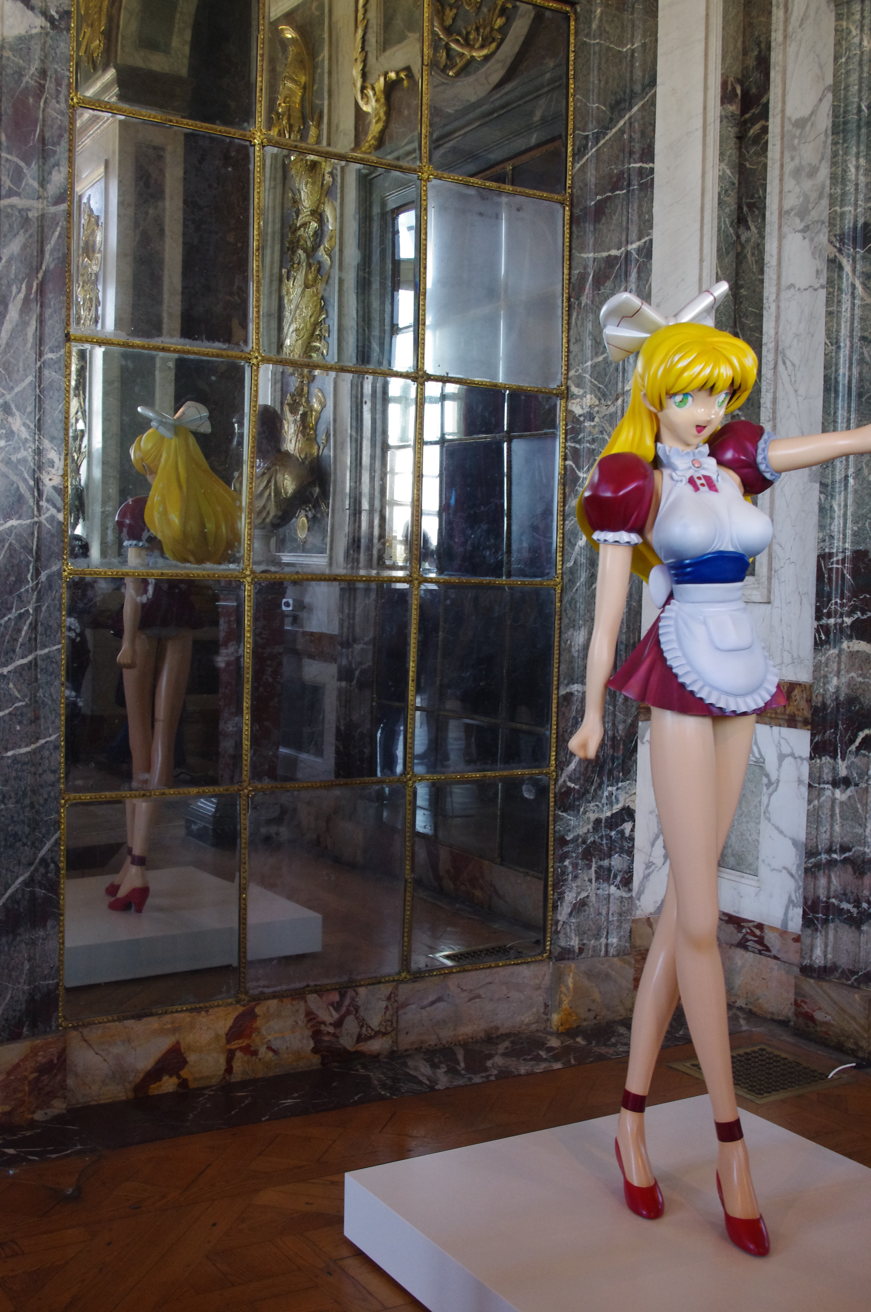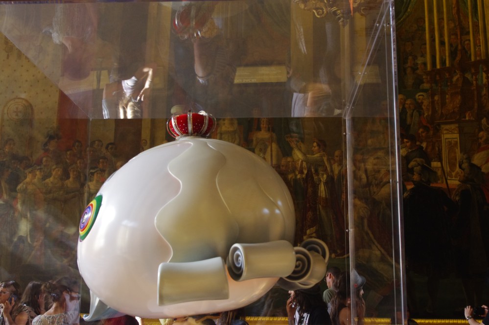 Donc je ne suis pas fan (mais alors pas du tout, ça me fait penser à des jouets pour chats, vous imaginez?), mais ça a le mérite de redonner à Versailles de l’actualité de pointe, sa destination première voulu par son créateur, et de sortir ces murs de la naphtaline, à laquelle ils n’étaient pas destinés.