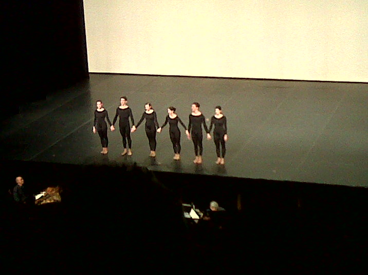 Pour moi cette œuvre est une sorte de concentré de la danse selon Merce Cunningham: des mouvements parfaits, épurés à l’extrême et qui sont donc la fusion parfaite entre la technique impeccable de la danse classique et l’audace et la créativité de la danse contemporaine (je suis une malade qui observe toujours les extrémités des danseurs: doigts « placés », pointes de pieds « effilées »… je suis dingue!) ; des pas de deux pleins de sensualité froide et des costumes qui servent son propos de manière impeccable, en l’occurrence le groupe de danseurs constituait un magnifique arc-en-ciel (chacun dans un académique à manches longues de l’une des teintes de l’arc-en-ciel).
