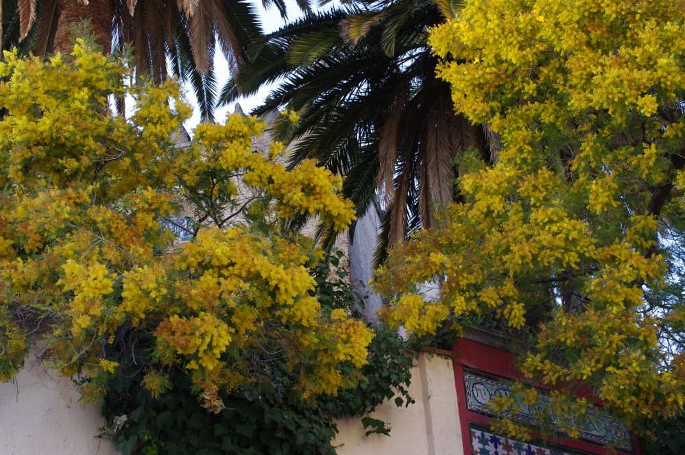 Le ciel est d’un bleu parfait, l’air est doux, nous accueillons le printemps avec plaisir. Que cette lumière toute neuve est belle! Comme elle se marie bien aux murs blancs, aux orangers et aux maisons ocre et roses.