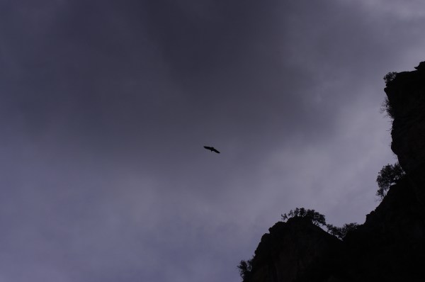Un immense rapace est venu tourner au-dessus de nos têtes, assez près pour nous laisser admirer la belle découpe de ses ailes.