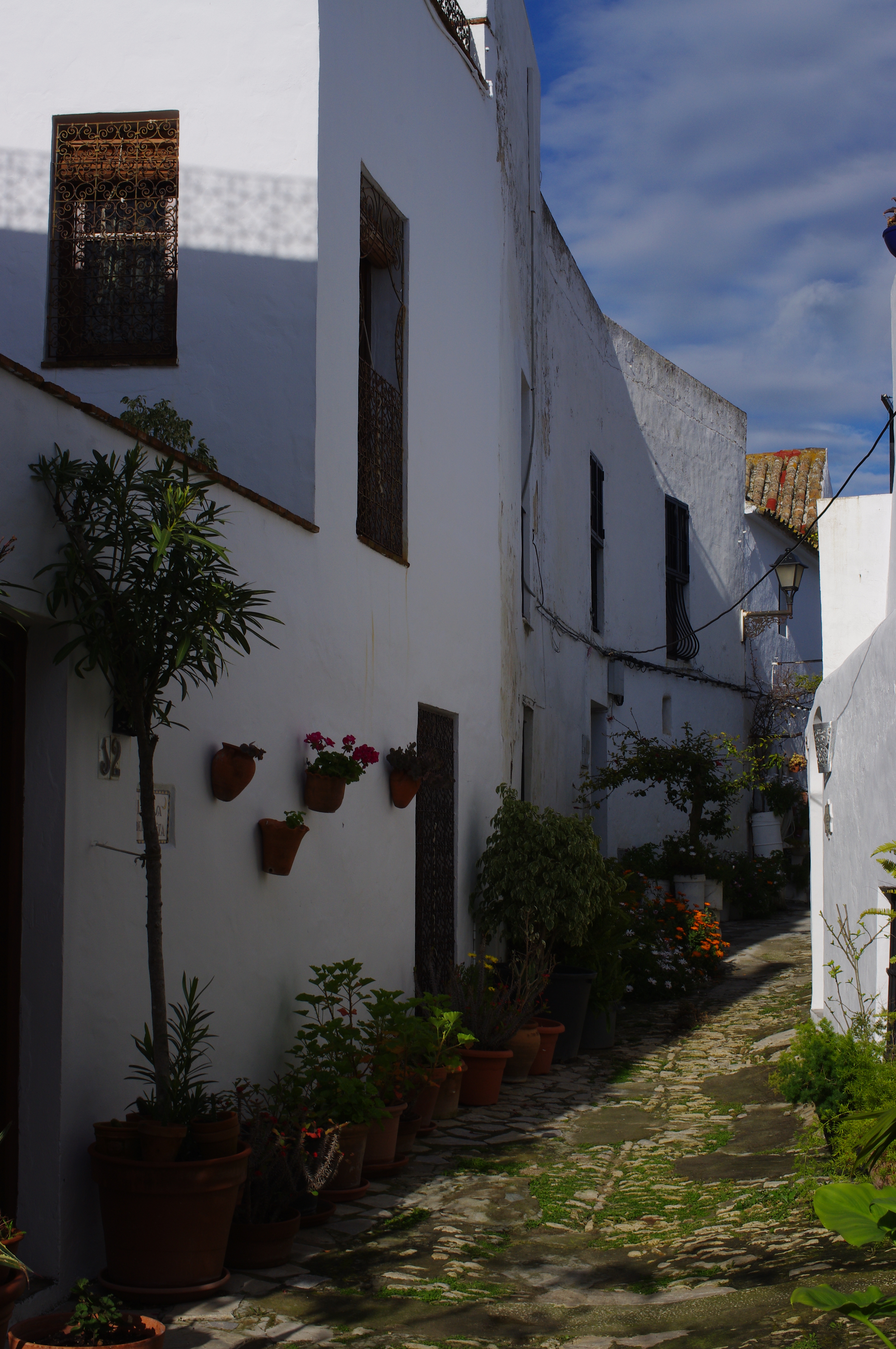 Enfin un petit village aux maisons blanches, enfin des petites rues illuminées de soleil et bordées de fleurs et de cactus, enfin l’image de carte postale andalouse qu’il est si agréable de trouver, même si les images d’Epinal ne sont pas vraiment notre tasse de thé. Après avoir traversé plusieurs villes et villages récents et sans âme, cette petite ville fait du bien à arpenter.