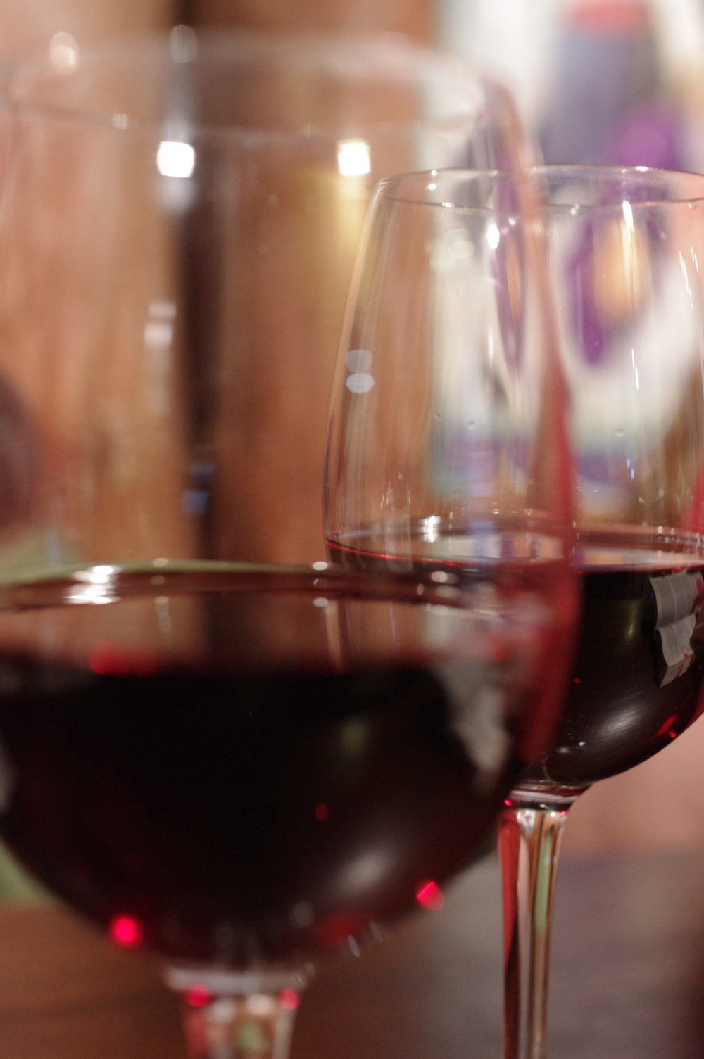 Un très beau bar au centre du lieu, de grosses cuves, quelques tables basses, plein de tables hautes et surtout plein de choses à goûter.
