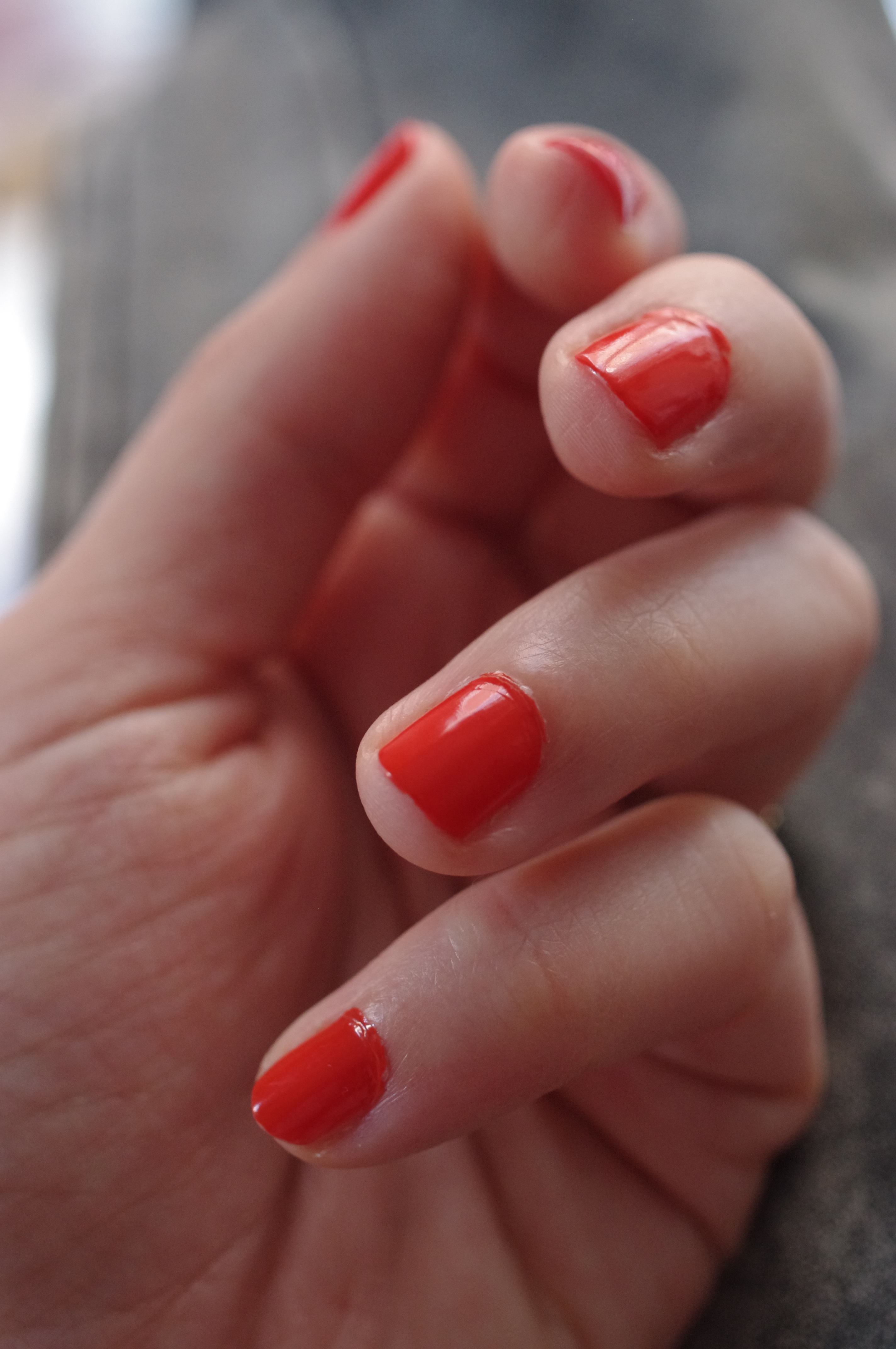 Personnellement, j’adore ce vernis orangé, avec une french manucure nude sur le bout !