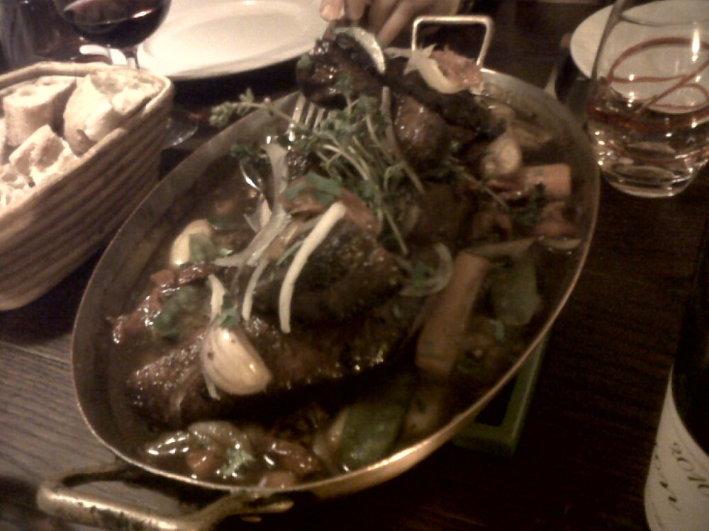 Classique, cuit à la perfection, des petits légumes qui hurlent que le printemps est là, de l’ail confit divinement… miam!!!!!!