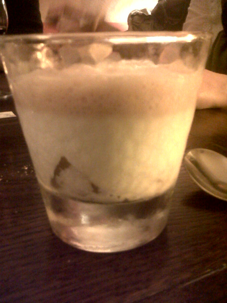 Et pour finir une panna cotta sur lit de pommes et couverte d’une émulsion de caramel.