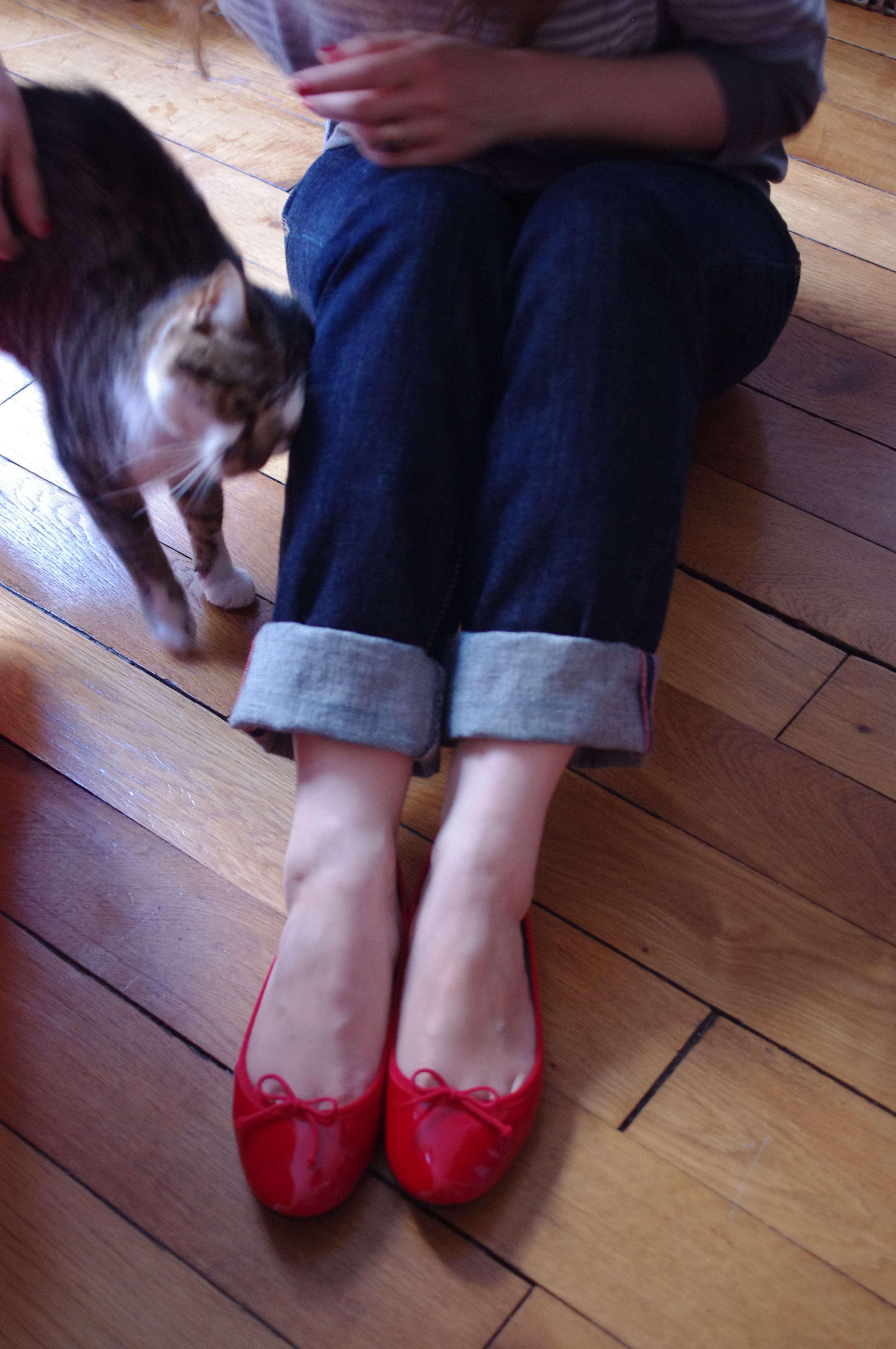 1. Rouge comme une publicité pour rouge baiser, d’ailleurs la bête à Miaoouh semble aussi devenir amoureuse de vos jolies ballerines.