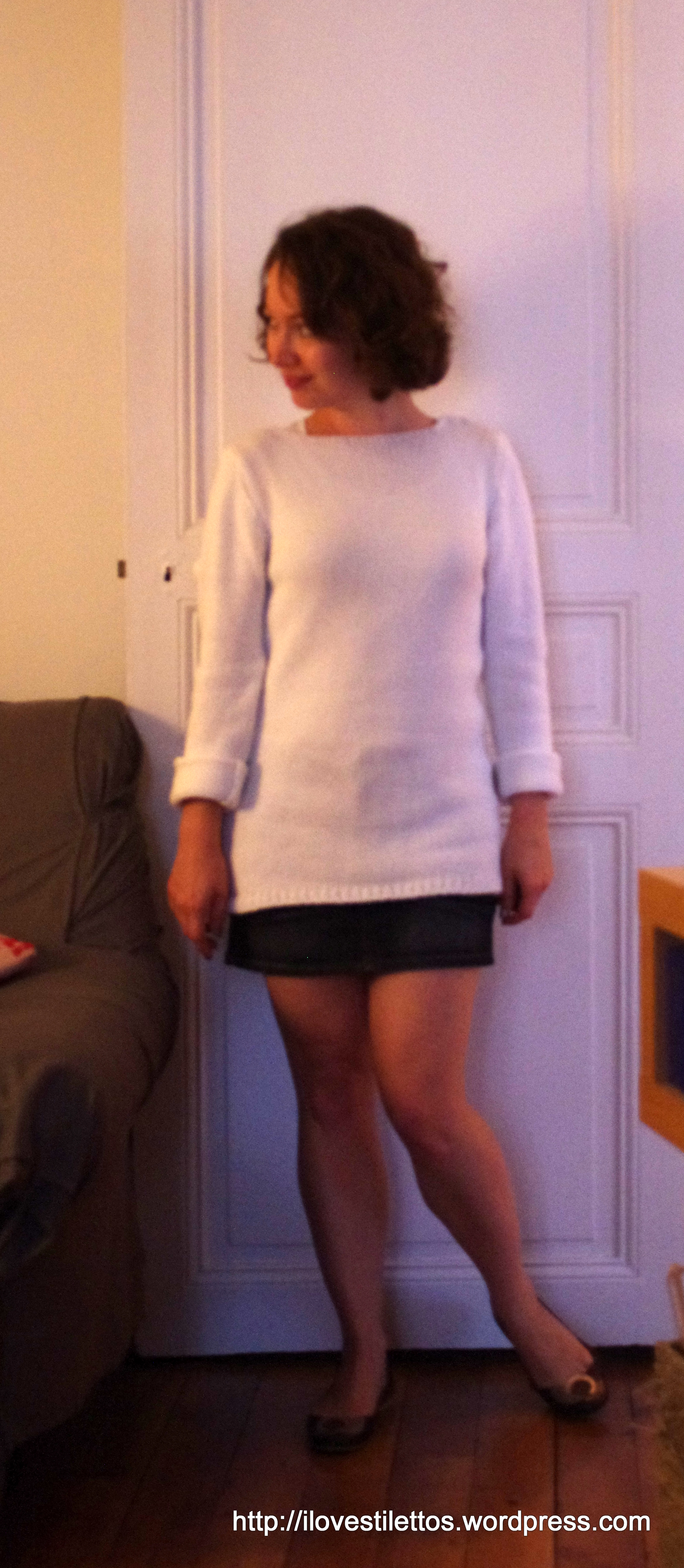 Ce pull et cette jupe sont le résultat de l’un de ces échanges: Holly pour le pull, Virg’ pour la jupette, les ballerines sont dans ma chaussurothèque depuis des années et ne sont pas près d’en sortir!