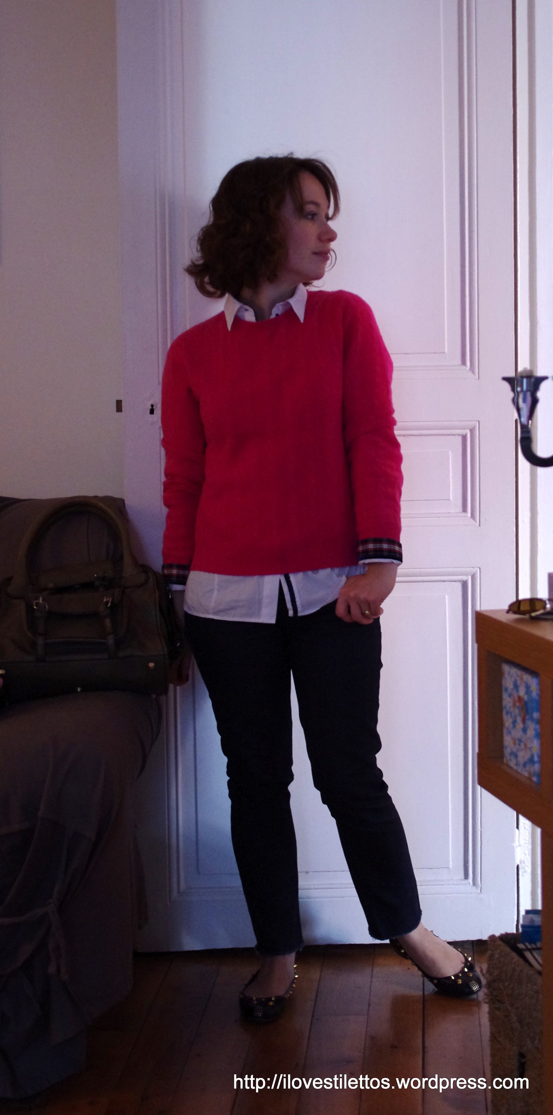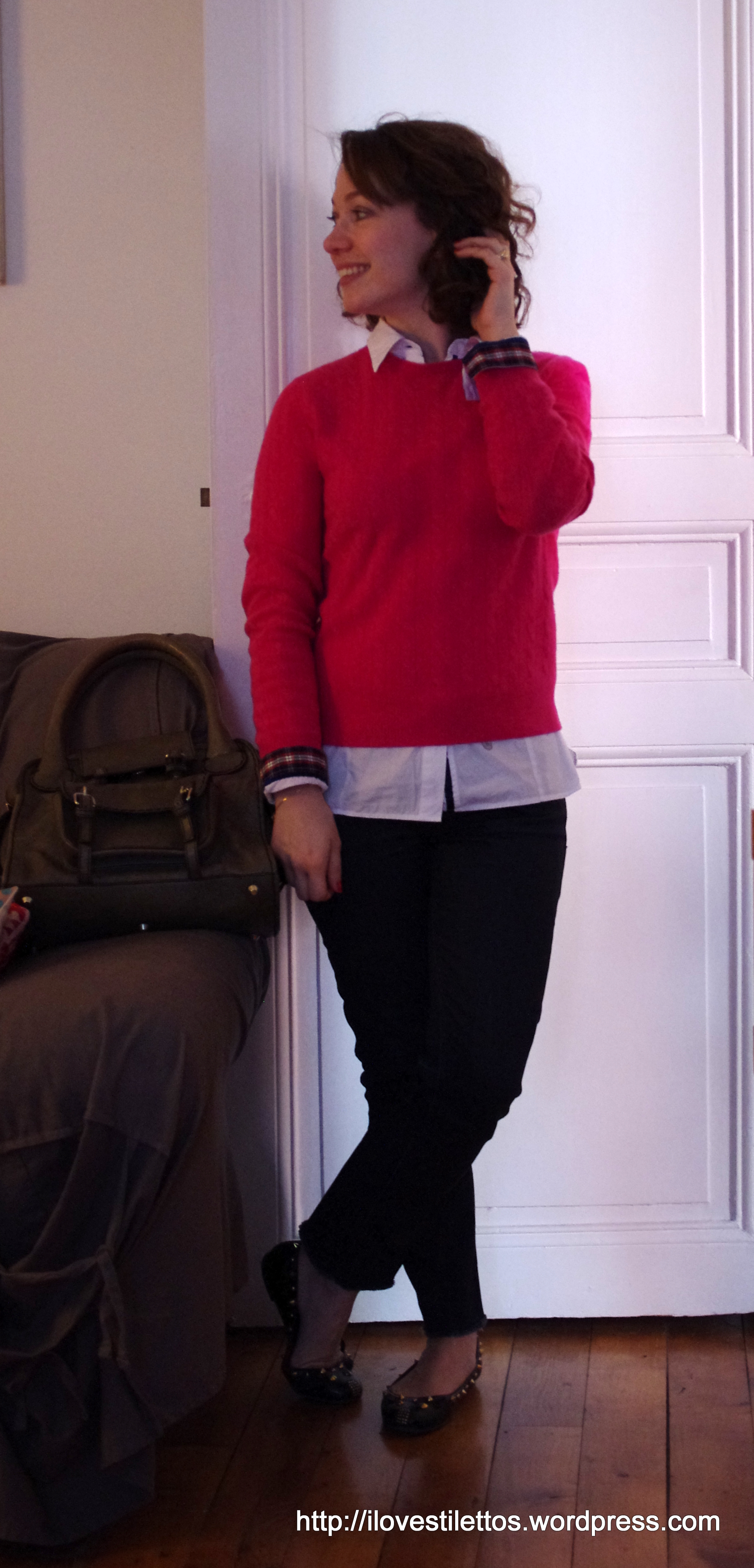 Envie de mon petit pull à torsades fuchsia et d’une chemise qui se fait la malle.
