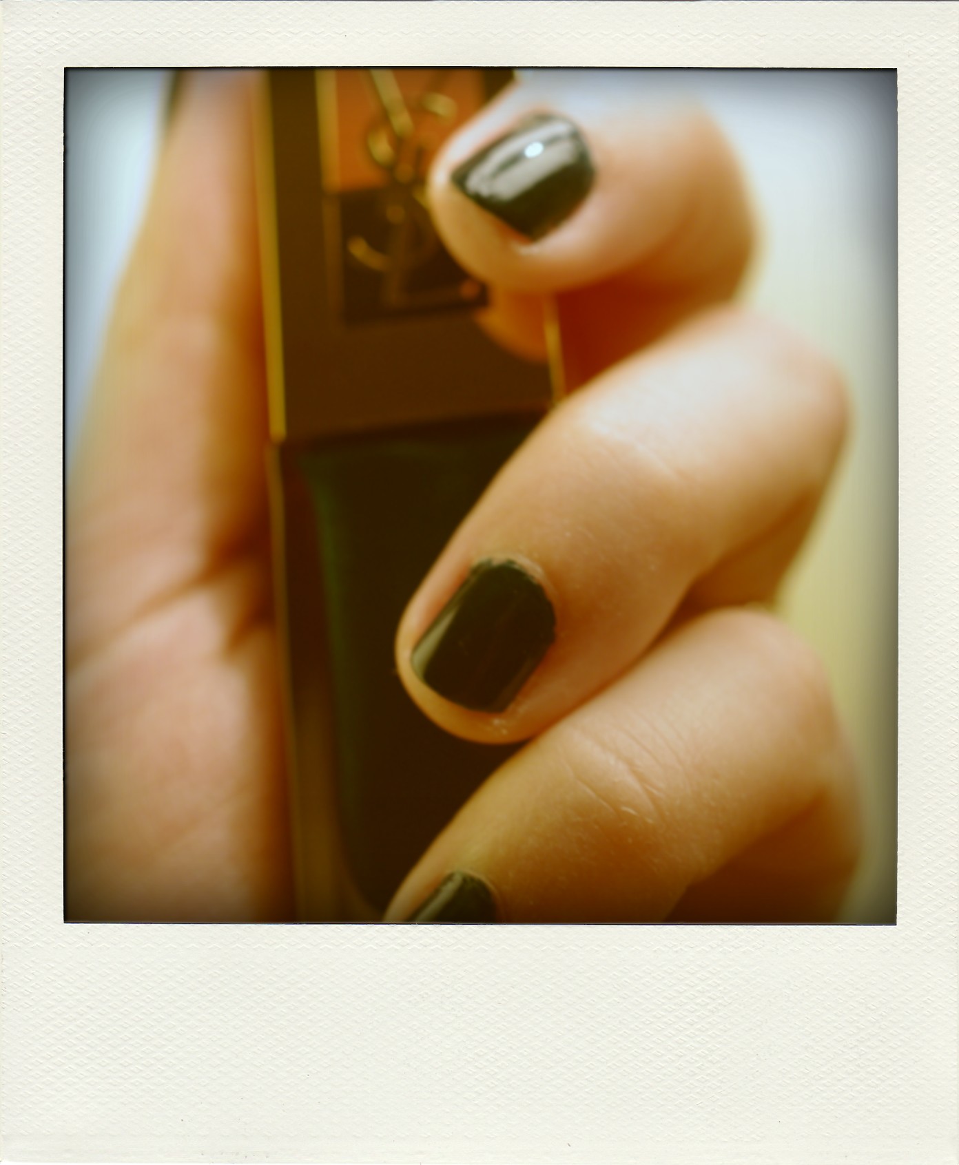 La vernis addict que je suis a forcément craqué pour le vert de la saison, une réussite à la couleur de pierre précieuse et joliment appelée Winter Green (beaucoup plus joli que le Vert de Gris retenu en français) et signée Yves Saint Laurent.