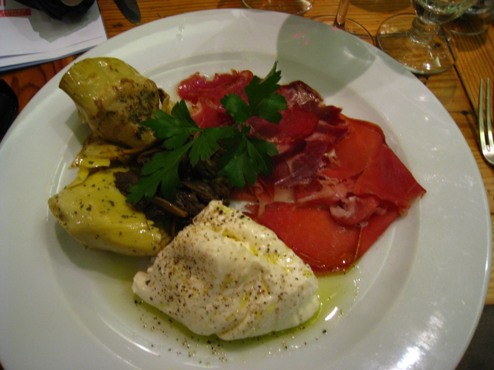 Une burrata dingue, ses artichauts italiens et un chouïa de charcuterie