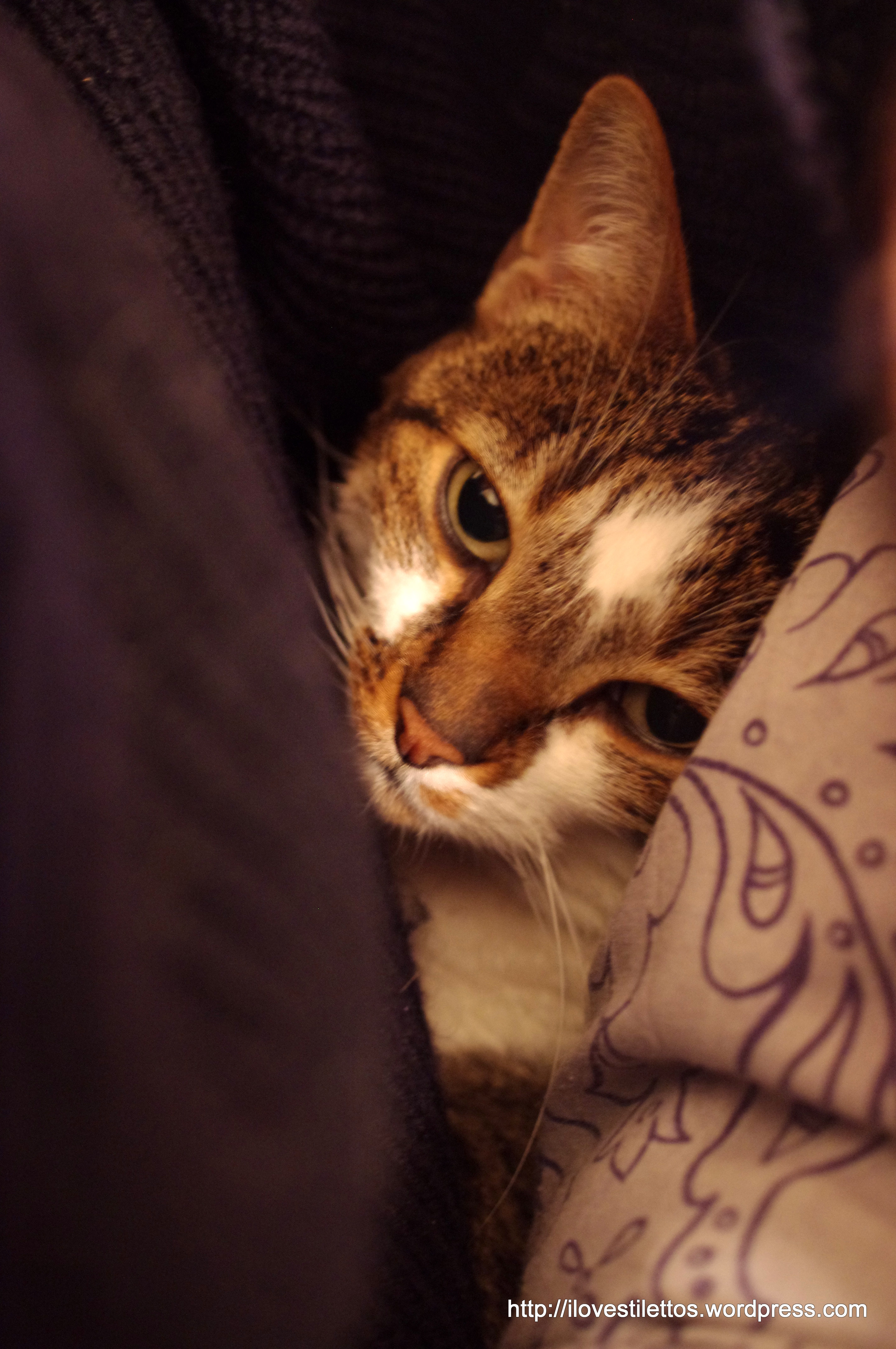 Elle guette le moment où Mr Papillon s’installe confortablement sur le canapé et étale le petit plaid sur ses jambes ou s’enroule dedans. Elle s’approche alors à pattes de velours ou pieds de mammouth selon son humeur du moment et chercher un trou dans la cuirasse pour se glisser dessous.