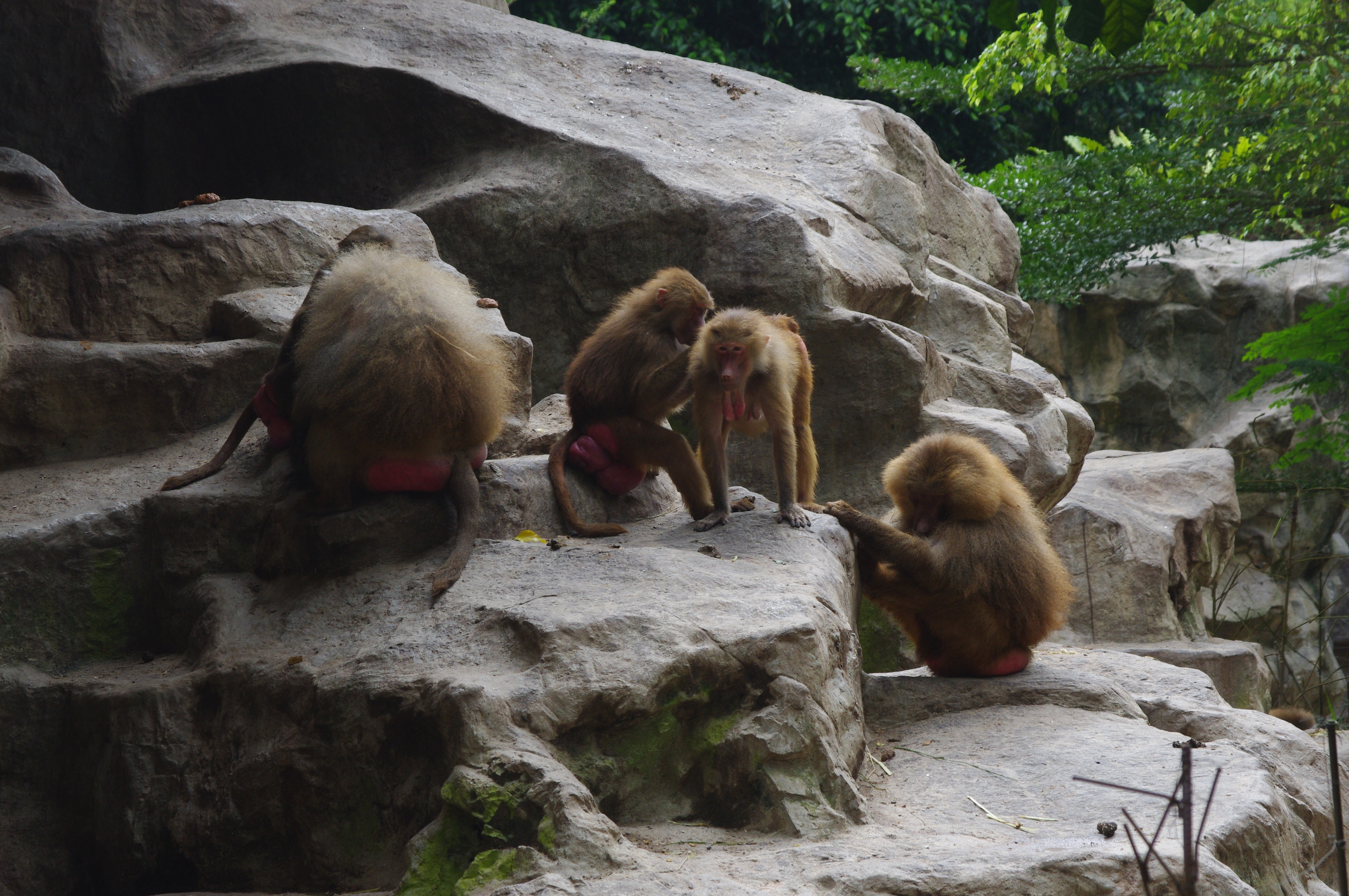 Les singes sont toujours géniaux à observer car ils nous ressemblent tellement dans leurs attitudes. Voir une maman et son petit est toujours très très attendrissant car leurs gestes nous font immédiatement penser à des gestes maternels humains.