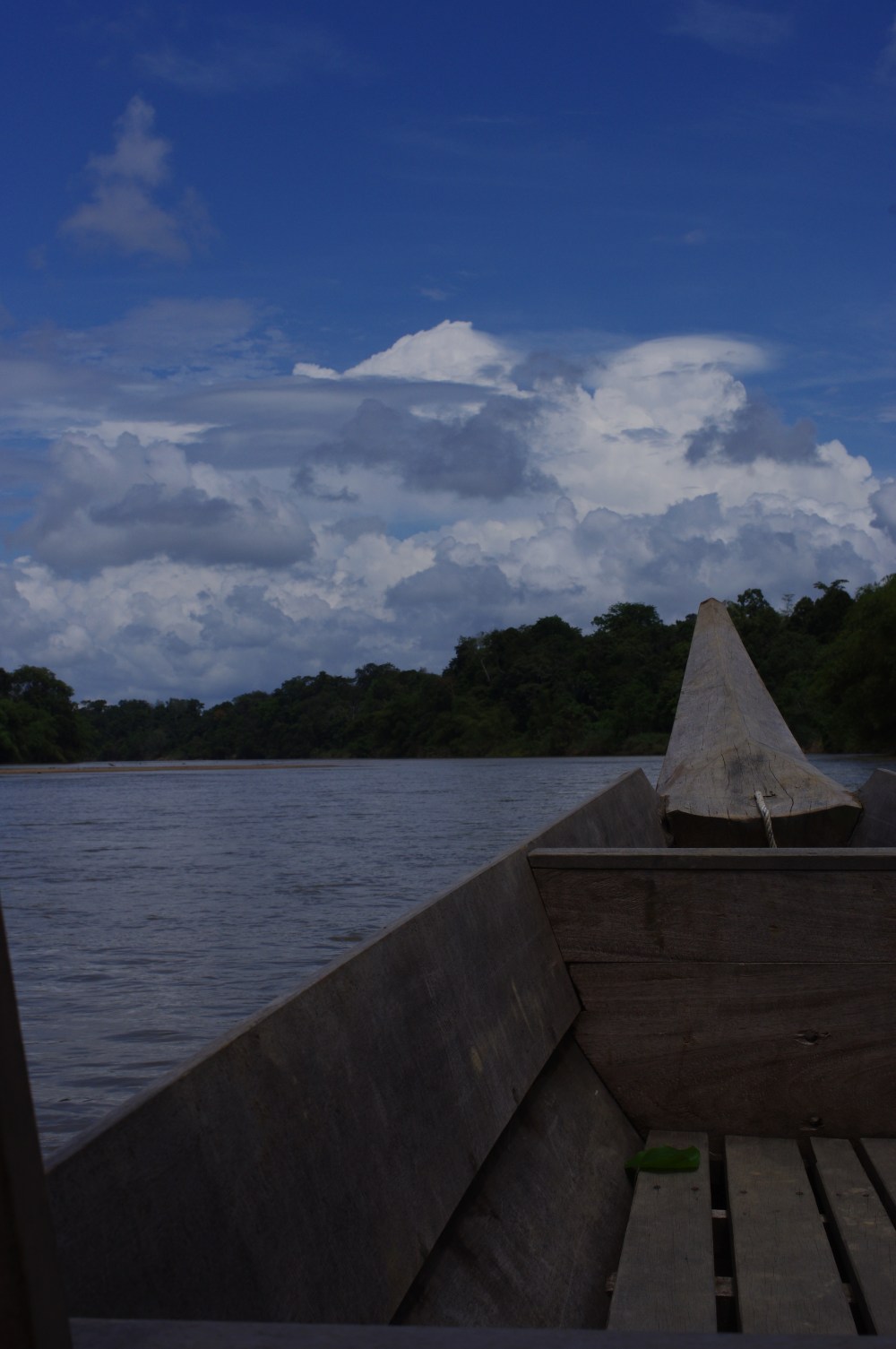 Vous avez eu le récit de notre arrivée dans le parc, ou presque. Il manque comme information qu’avant la pluie nous avons plutôt aimé notre balade en pirogue. Quand même! Trois heures c’est un peu long, mais c’est tellement magique de se retrouver dans la jungle qu’on ne se souvient de la durée de la balade que parce qu’on a un petit poil mal au postérieur.
