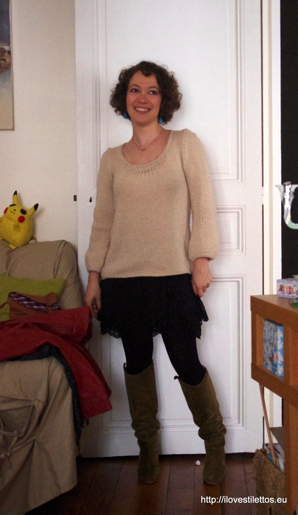 Super look ! L’ensemble petite jupe + joli pull fait toujours mouche 🙂