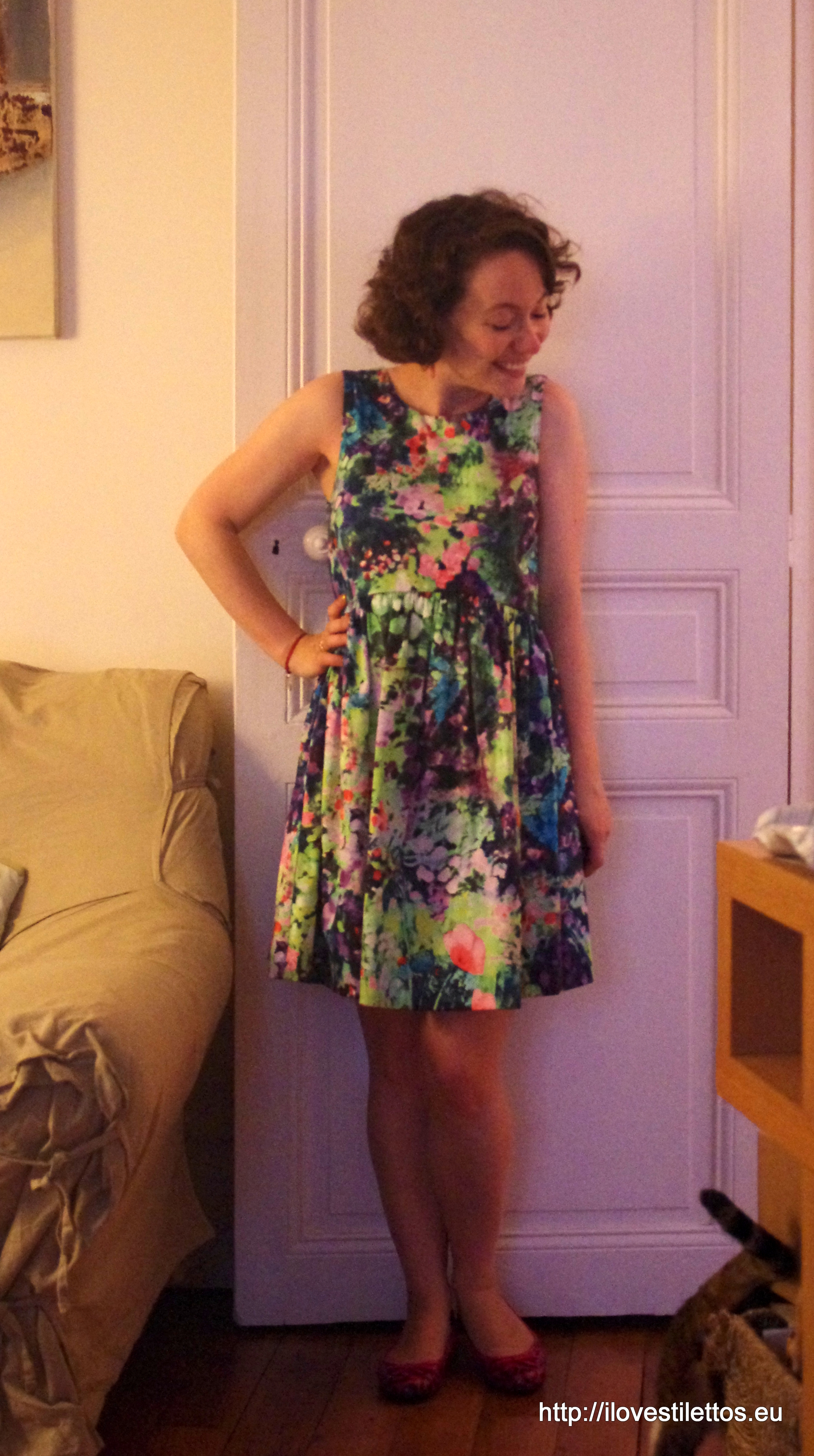 Les chaussures sont ravissantes mais ne volent pas la vedette à la robe. Pour le mariage de la cousine Sidonie cet été c’est la tenue parfaite: habillée mais pas trop classique (merci la petite dose d’acide de Mr Monet).