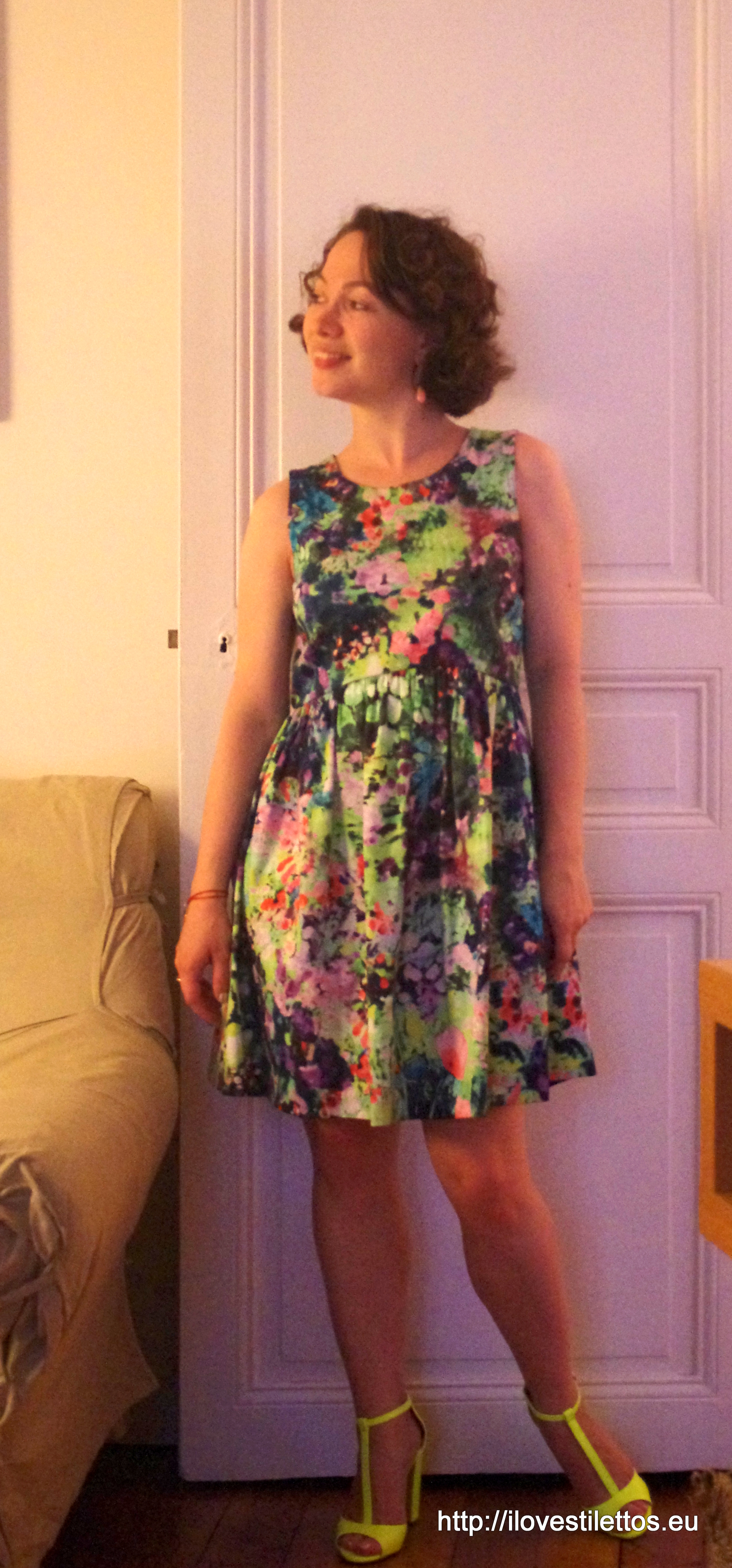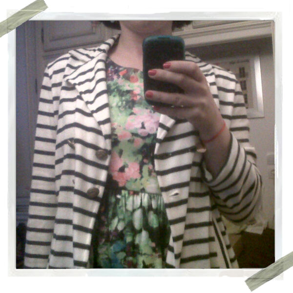 Nous avons donc une robe signée Zara et surnommée « les nymphéas sous acide » qui n’a pas besoin de grand chose pour produire son petit effet (elle aime les rayures, mais ce n’est pas le sujet du jour).