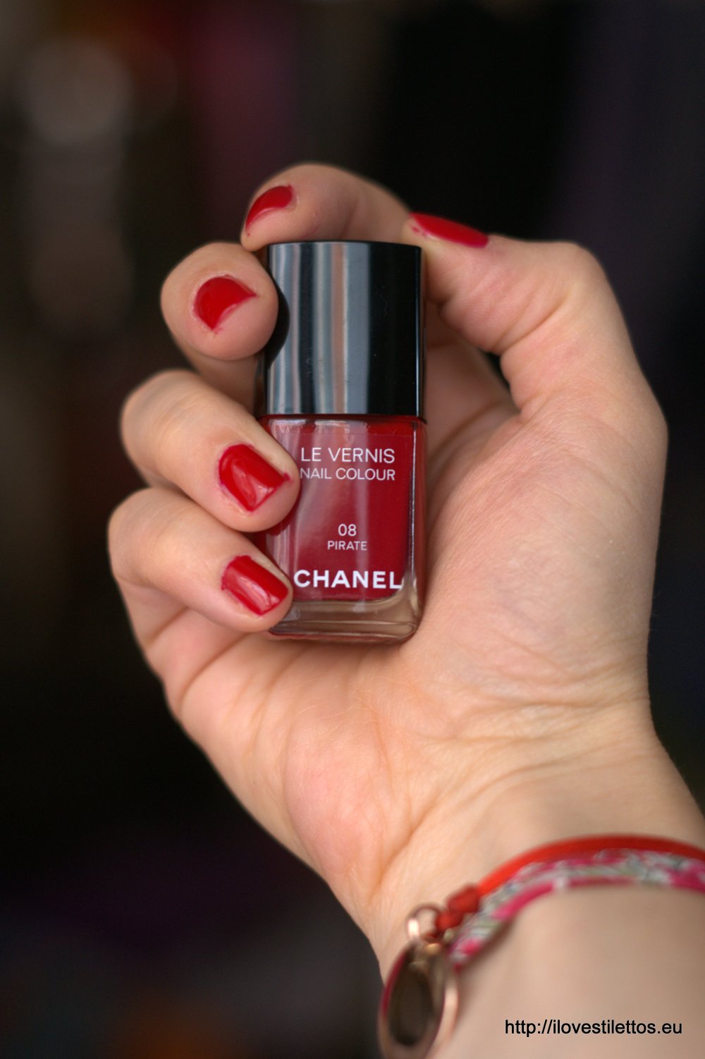 Mon vernis à ongles – le fabuleux et mythique « Pirate n° 8 » est assorti à mes nouveaux yeux fabuleux. Inutile de vous dire combien cela me ravit, moi qui aime autant le rouge que les détails minutieusement soignés.