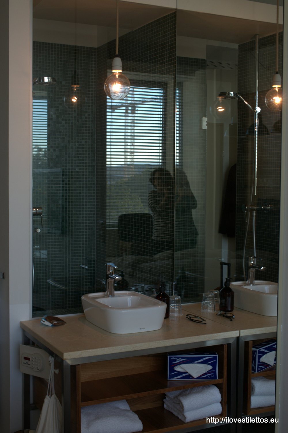 Notre chambre faisait partie des chambres normales: pas gigantesque, une douche et non une baignoire, mais un espace joliment optimisé, des détails qui nous ont beaucoup plu (les lampes industrielles, le variateur lumineux, les produits de toilette en grand format, hyper agréables et en vente dans le lobby, etc) et tout le confort autrichien, comprendre des couettes et oreillers douillets et moelleux à mourir!!!!