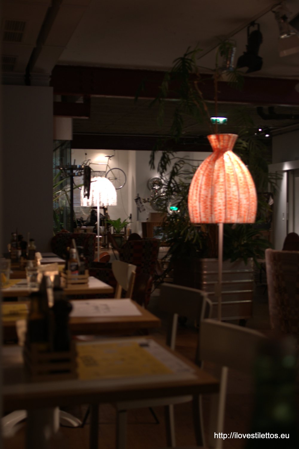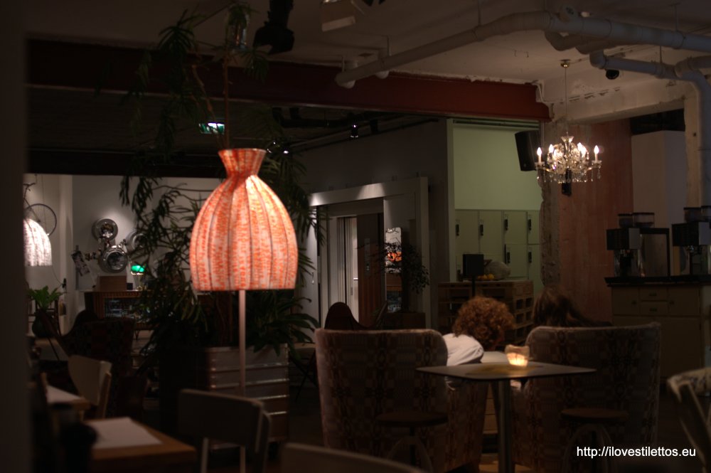 Le restaurant – salle commune est lui aussi très agréable et original: un canapé balancelle, des lampes en plastique de récup, des fauteuils de grand-mère et des tueries de fauteuils « nomades » en cuir (je veux les mêmes, mais je sais que chaque coûte un œil, un rein et un bras!), des tables et des chaises chinés ça et là, bref gros gros kiffage décoratif!
