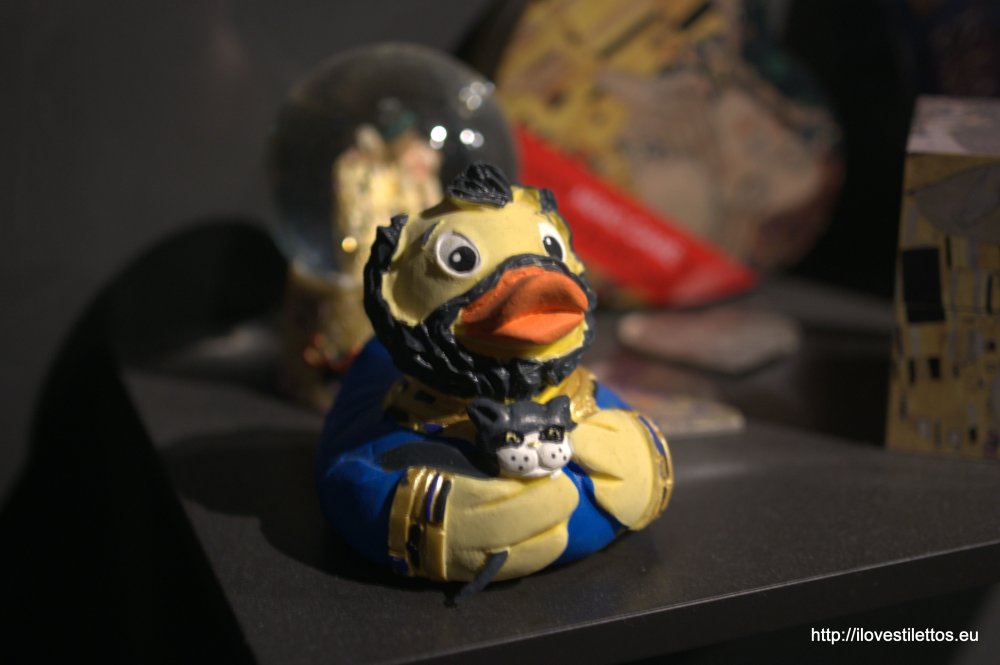 Le canard en plastique reprenant une célèbre photo de Klimt et son chat devant son atelier… celui je l’ai rapporté avec moi, il est trop drôle!