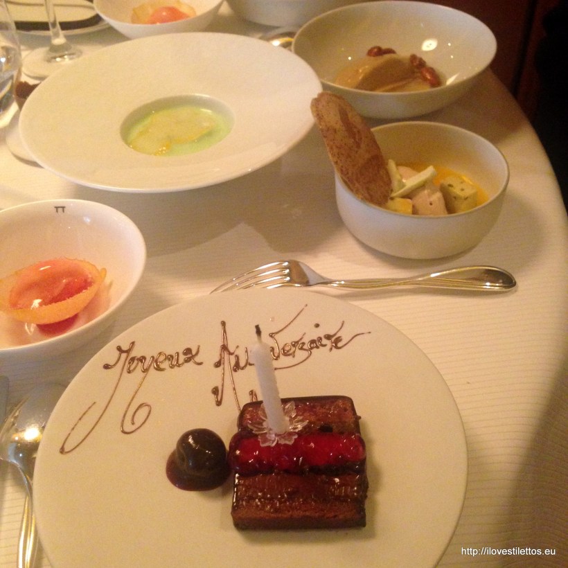 Ne cherchez pas les photos des plats, il n’y en aura pas, je n’ai sorti mon téléphone qu’avant que nous commencions à déjeuner et qu’en toute fin de repas pour immortaliser l’adorable geste de l’équipe pour mon amoureux.