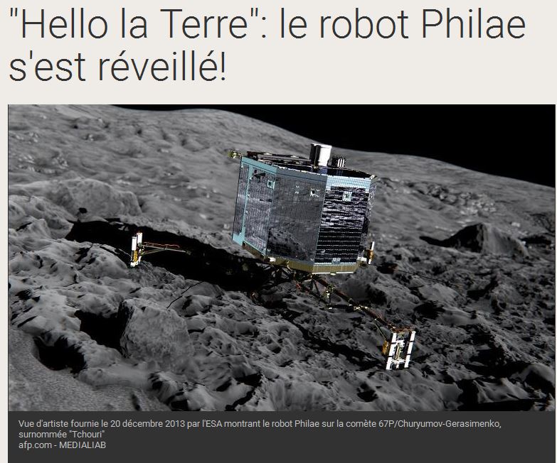 Dans un registre beaucoup plus léger mais passionnant et pour faire suite au reportage vu sur Arte et mentionné la semaine dernière, Philae s’est réveillé!
