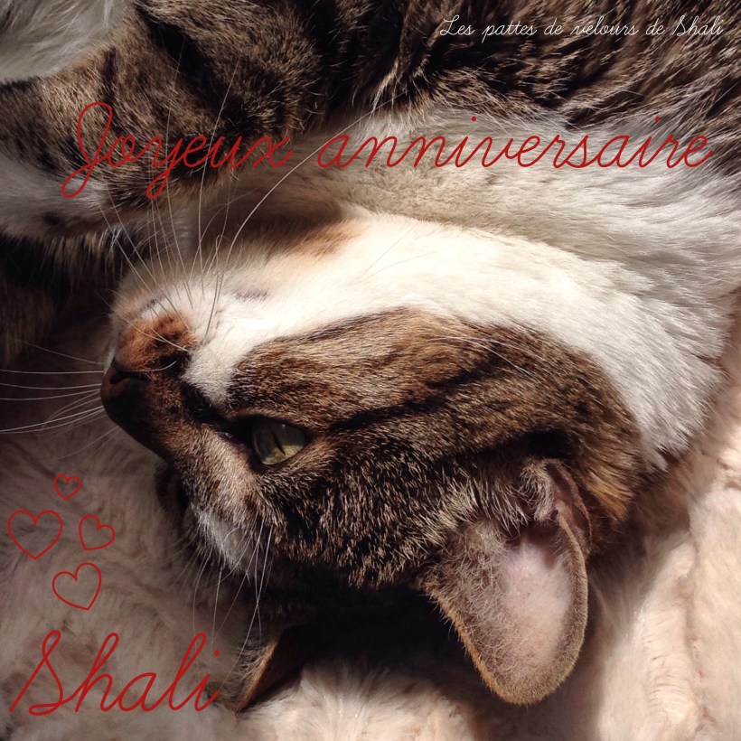 joyeux anniversaire Shali !! j’ai adoré ton article! je suis une grande amoureuse des chats, la mienne va fêter ses 14 ans en octobre et ne fait pas son âge non plus! pas un souci de santé, je croise les doigts pour que cela continue ainsi 😉