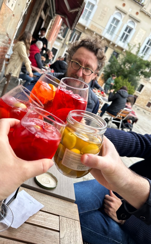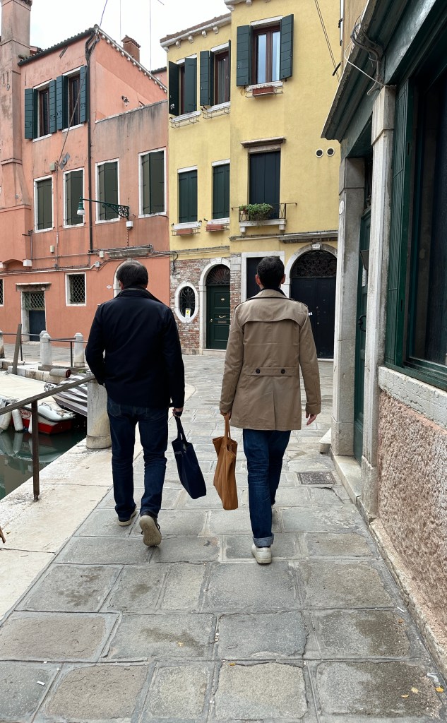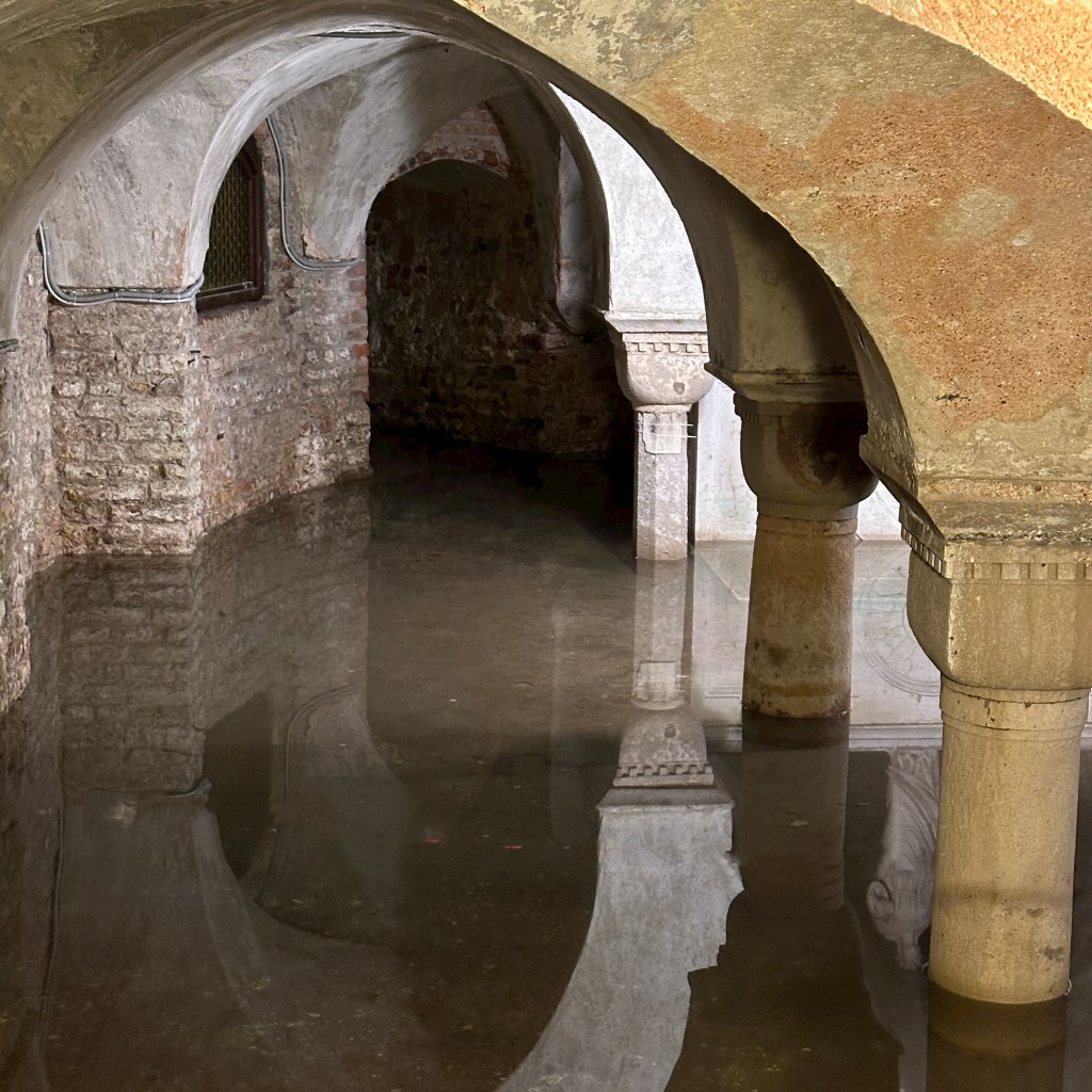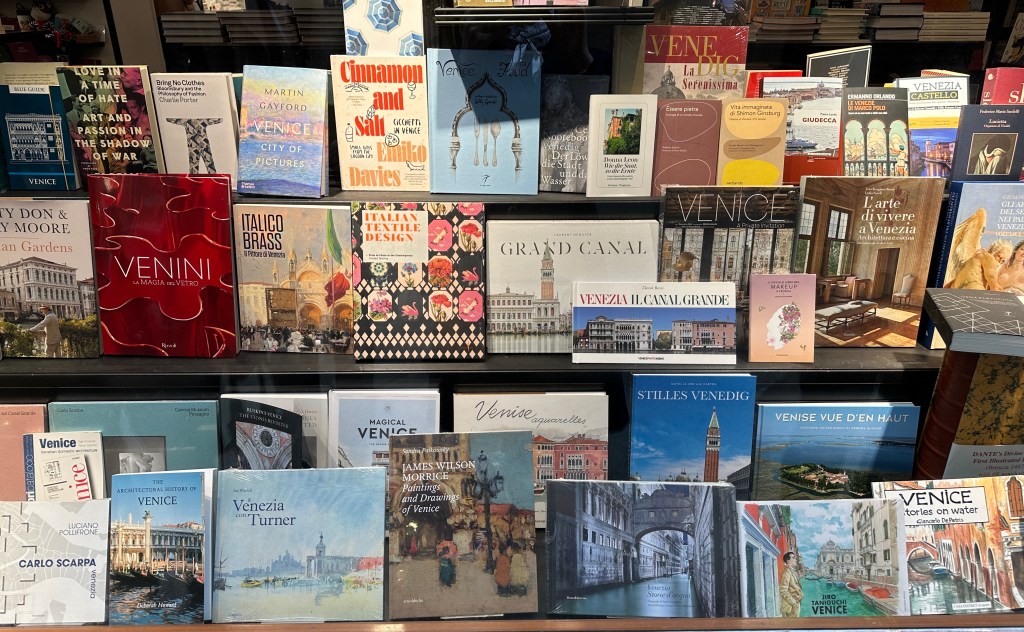 Nous faisons des haltes et des détours, là pour une jolie librairie, là parce que c’est l’heure d’un spritz, pour admirer la crypte inondée de San Zaccaria ou l’escalier de la Scalla Contarini.