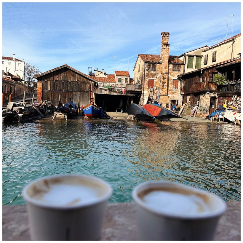 Nous partons marcher, profiter des ruelles, des quais, des canaux et des ponts, et nos pas nous amènent à notre cher Al Squero, où tant de spritz ont été bus.