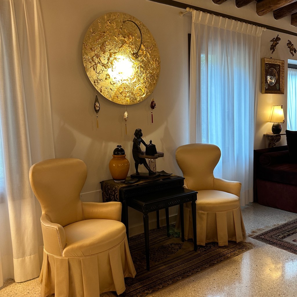 Noberto et Luana (et Léon le chat, mais il nous a snobés) ont créé un très beau lieu, dans le plus pur style vénitien, mais loin des codes habituels de l’hôtellerie ou des maison d’hôtes . Un vrai petit paradis dans une ville parfois fatigante à visiter tant elle accueille de visiteurs (nous sommes pourtant très entraînés et habitués vu notre lieu de résidence).