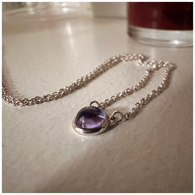 L’un des deux colliers récemment arrivés au Printemps était un petit «Color by the yard» en argent, avec un cabochon en tanzanite.